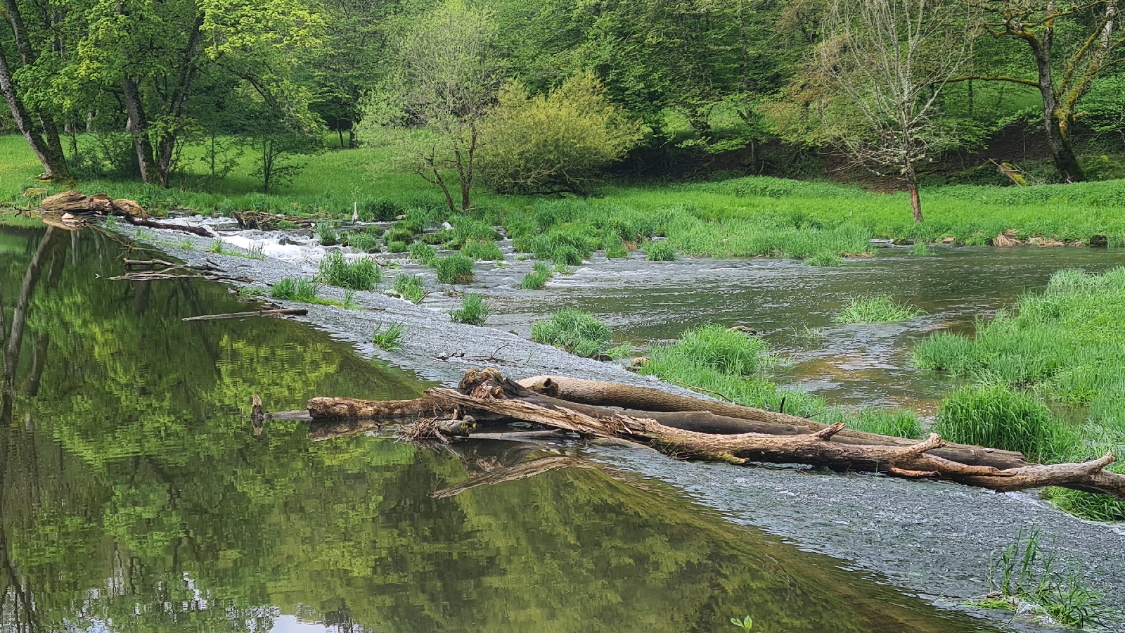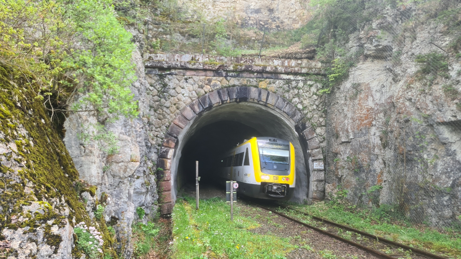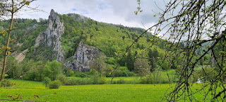 “ Der Abschnitt Fridingen Beuron gehört zu den landschaftlich schönsten Strecken der deutschen Donau. Das Tal wird hier von den Felsen so eingeengt, daß nur die Eisenbahn und ein Wirtschaftsweg am Talboden Platz finden. Senkrecht steigen die weiß leuchtenden Kalkfelsen auf und lassen die Hartnäckigkeit erahnen, mit der die Donau den fast 300 Meter hohen Kalkriegel auf 20 Kilometer Luftlinie durchnagt hat.“