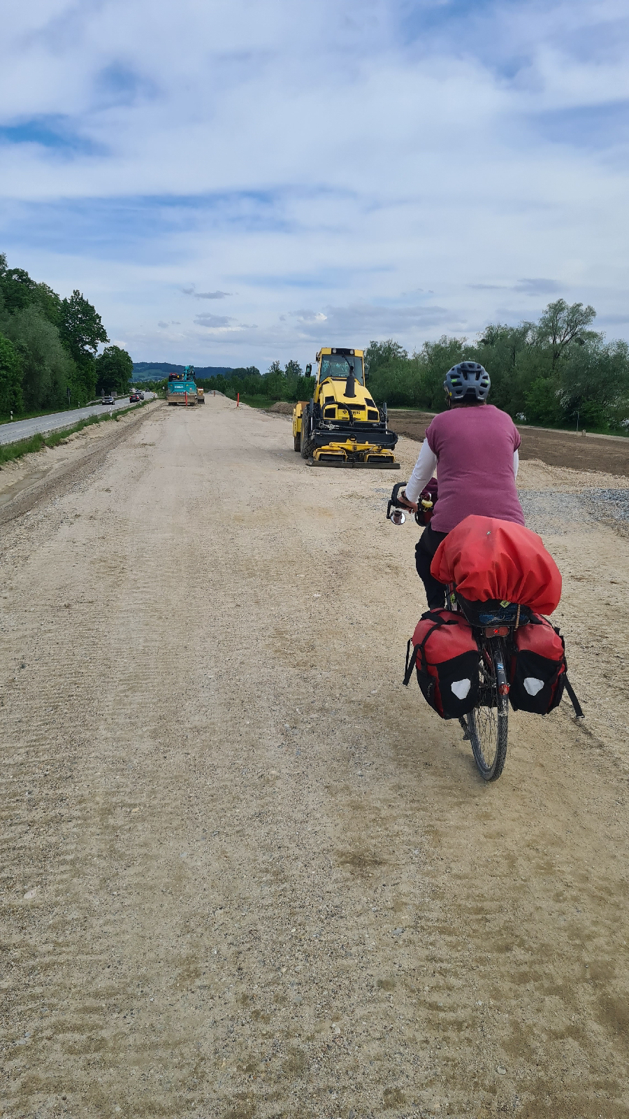 Am Ende dann nochmal Donauradwegbaustelle, vorbei an Baggern…: