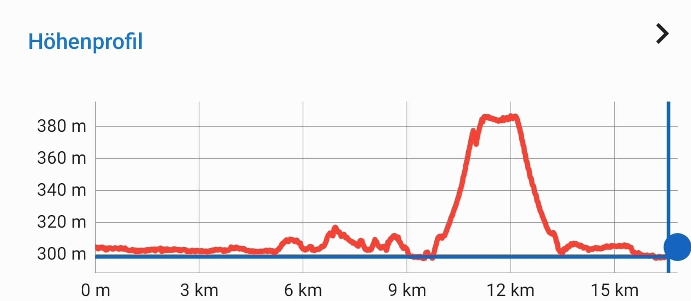 Heute: 56,9km – 3:50:32 – 14,8km/h (incl. Berg rauf und runter, max. 55km/h)