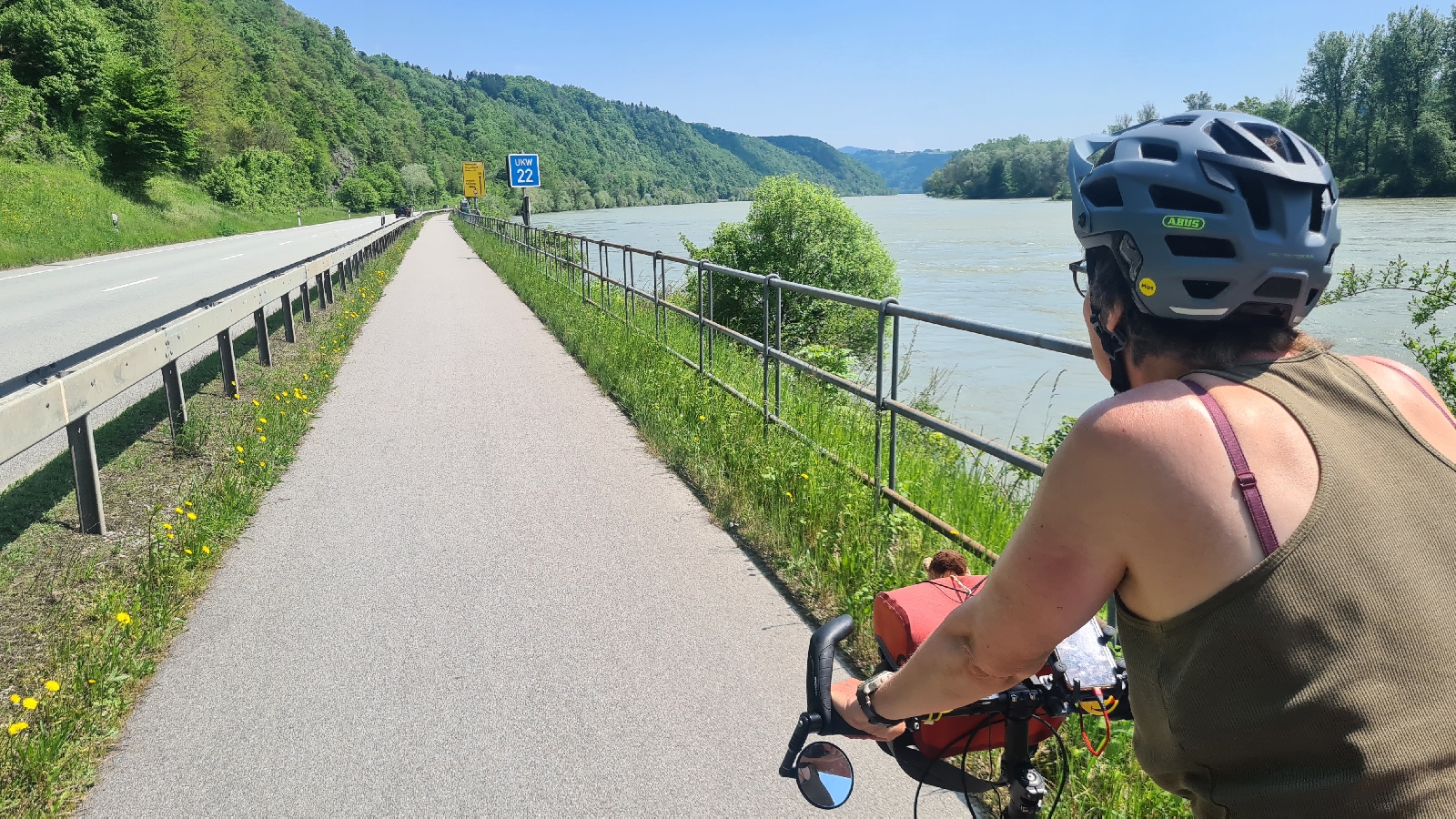 Frisch gestärkt und mit Ibu gedopt geht’s weiter Richtung Österreich. Der Weg ist wunderschön, dicht an der Donau, teils an einer Straße mit vielen rasenden Motorrädern, teils auch weiter weg von der Straße.