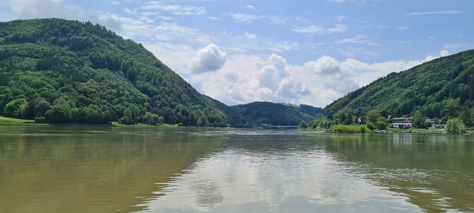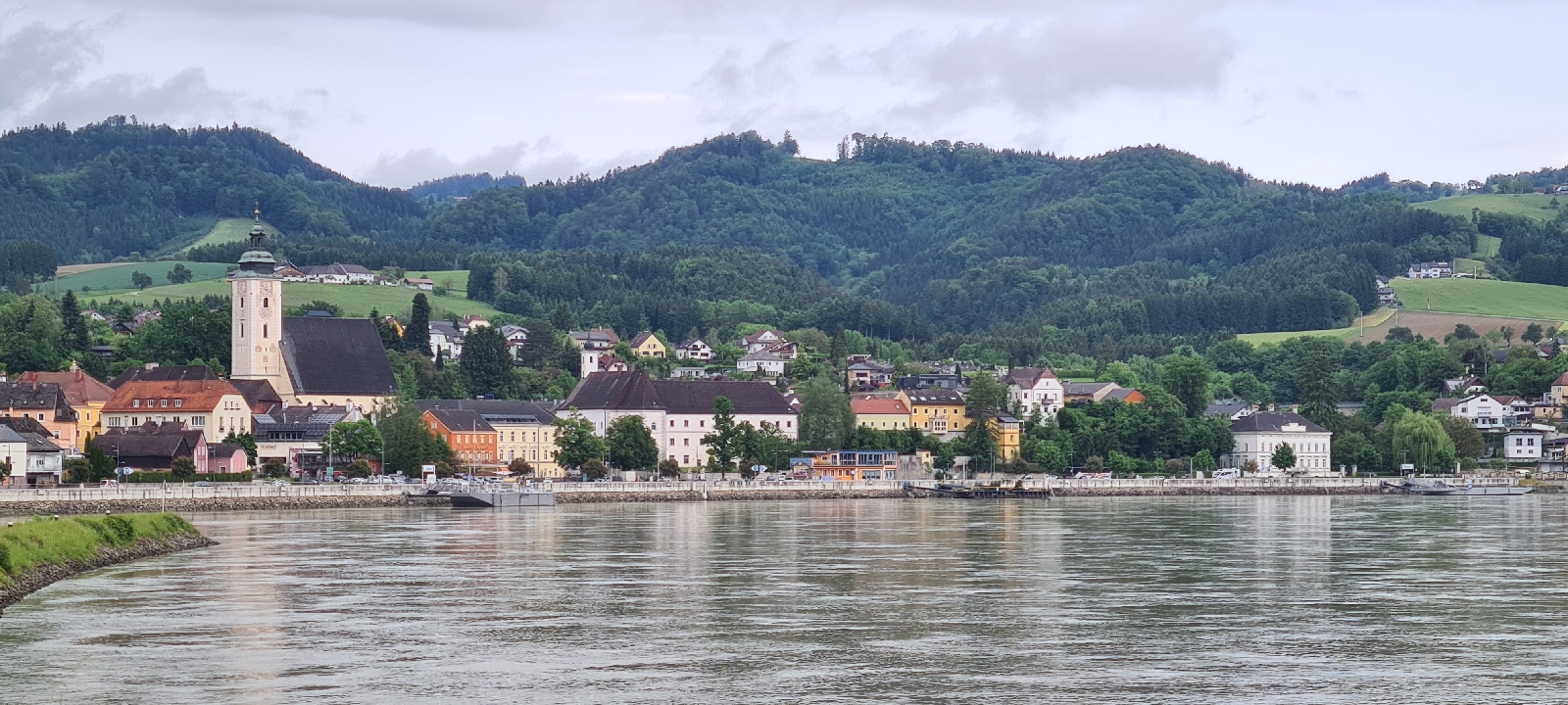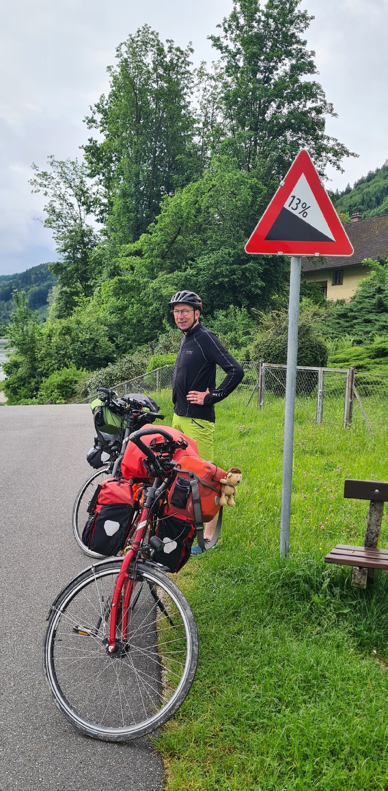 Erstmal radeln wir ziemlich weit weg von der Donau, sehen sie erst nach 5 Kilometern. Dann bis Grein direkt am Ufer lang, sehr schöner Weg. Kurz vor Grein ein kurzes steiles Stück