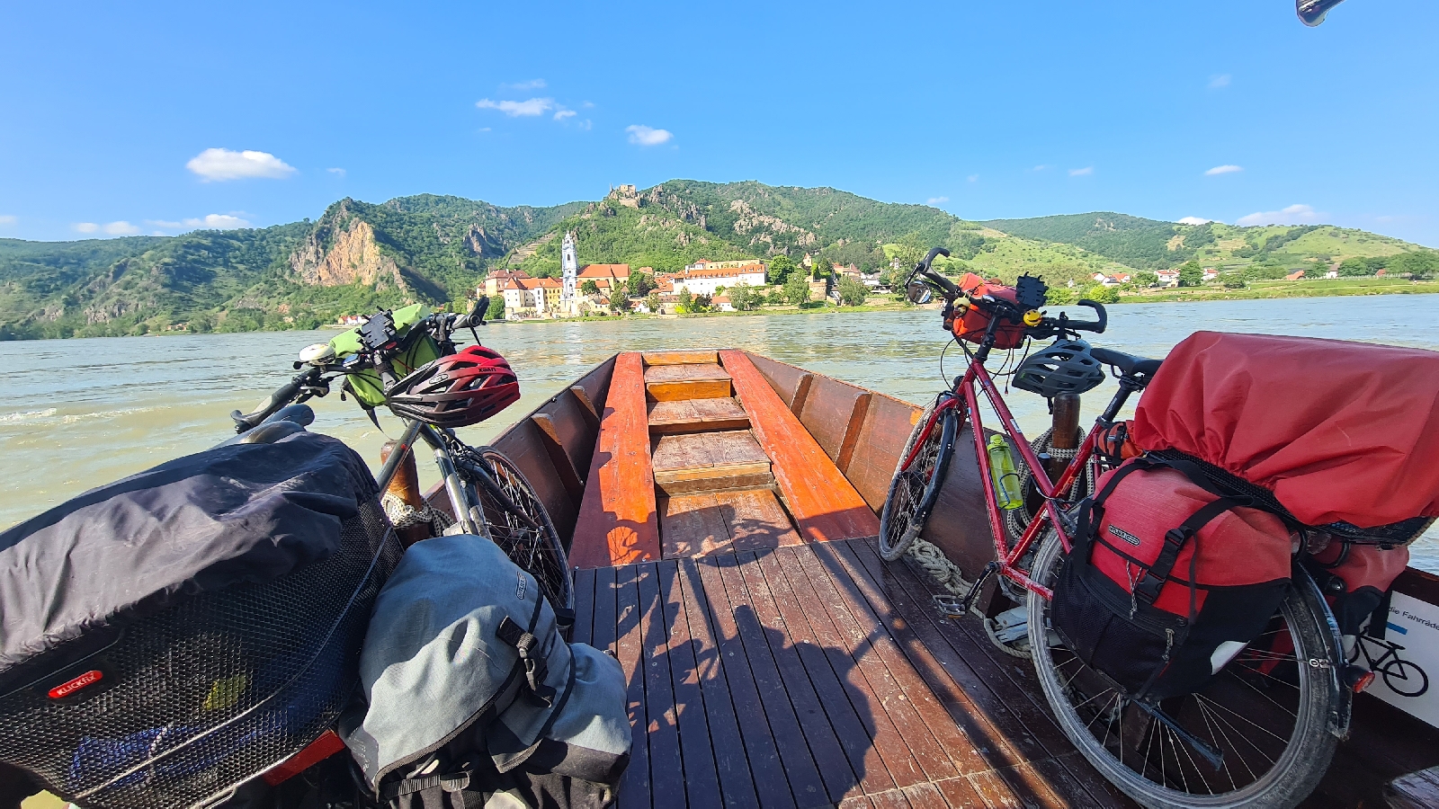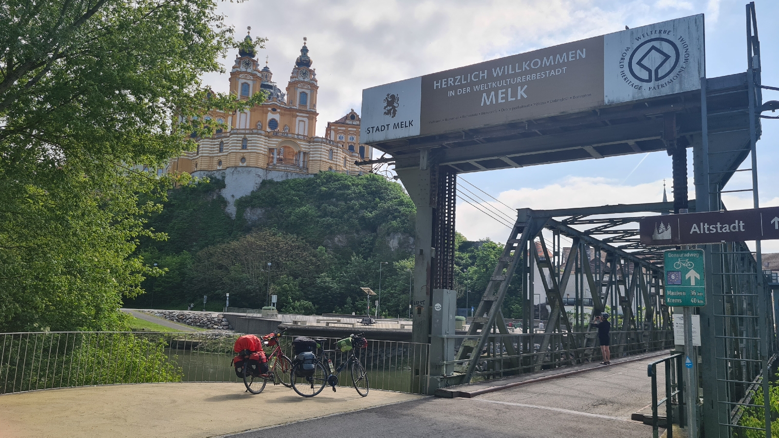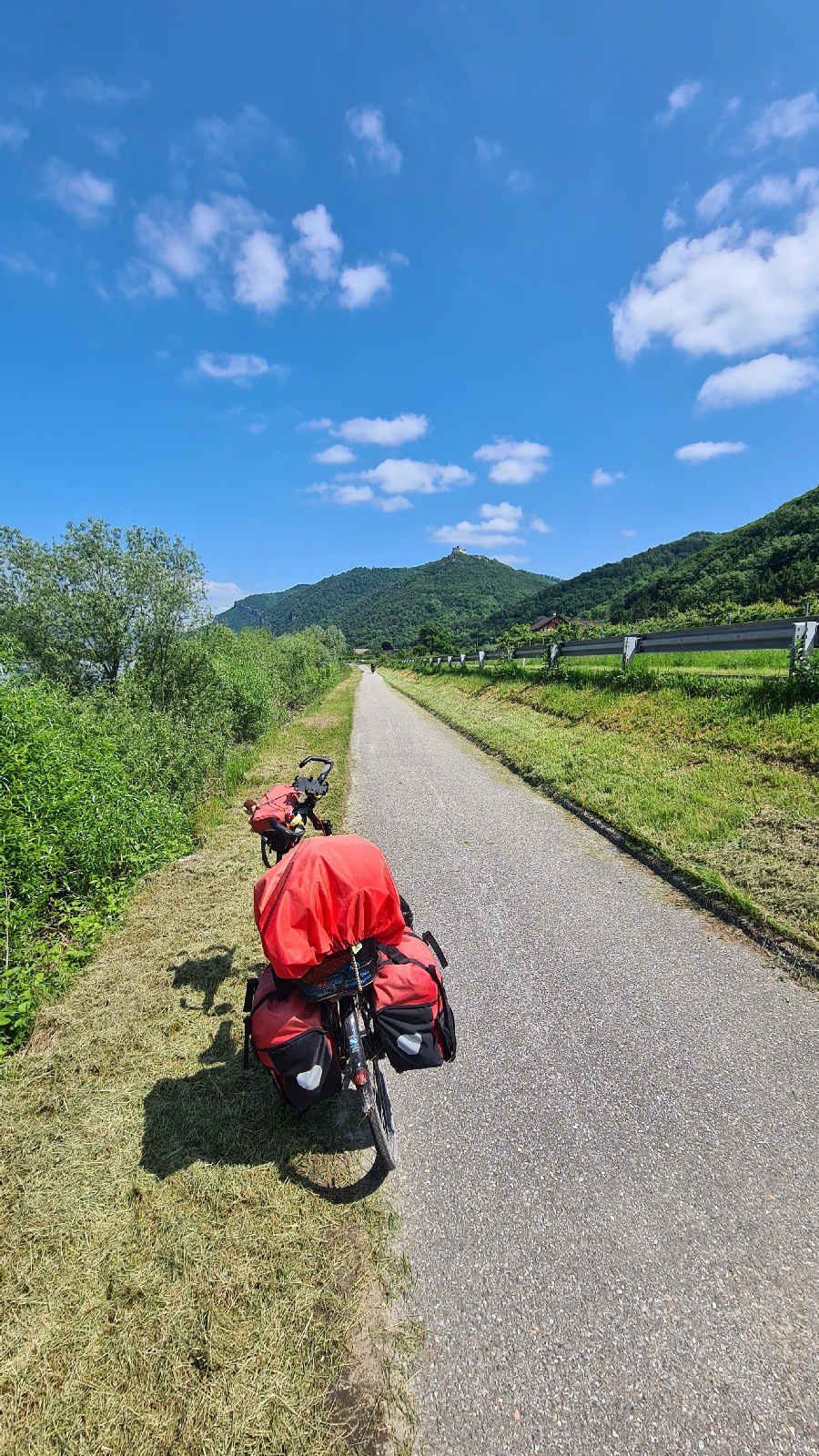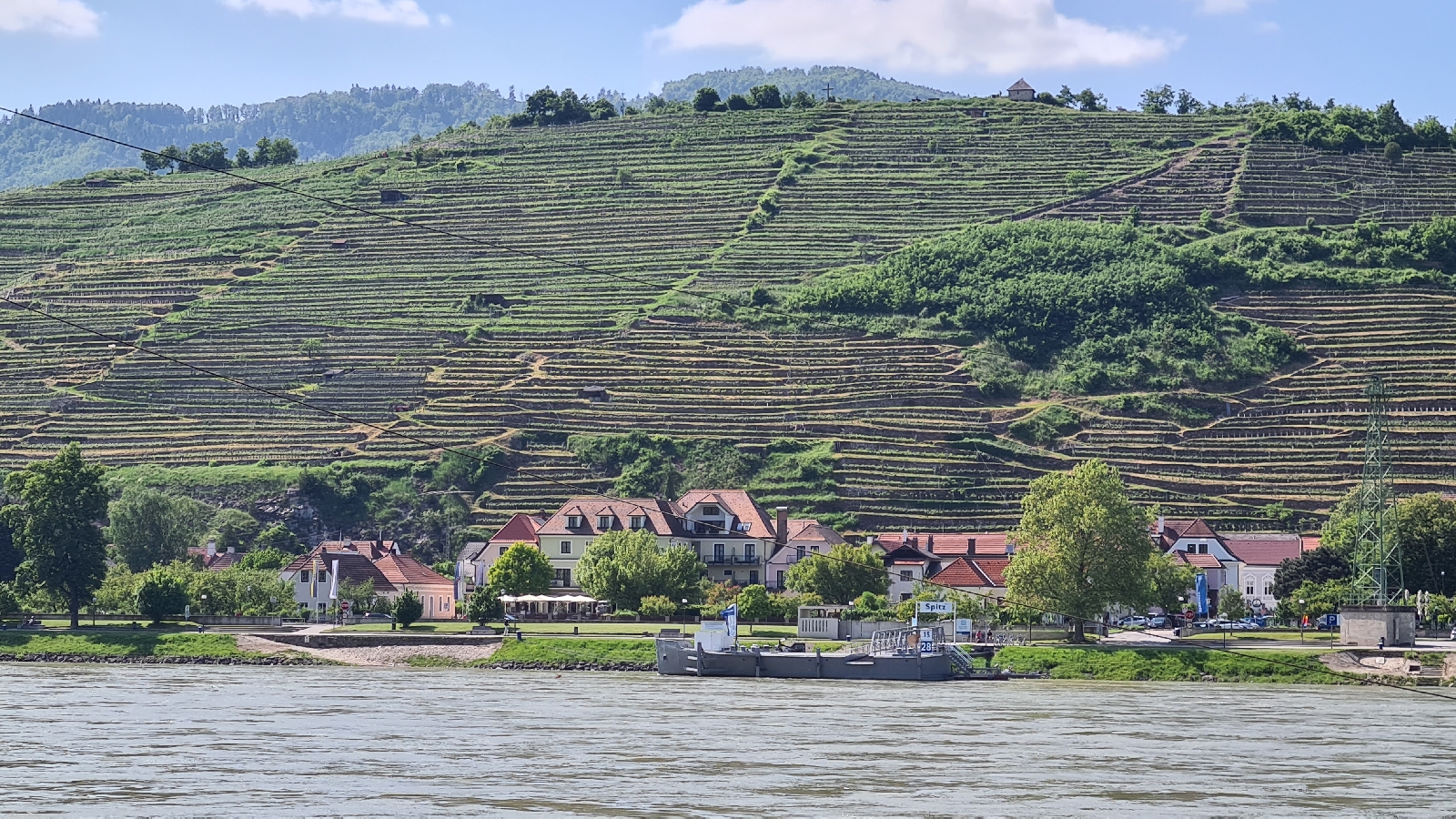 Bei Melk beginnt die Wachau – die Landschaft ist nun geprägt von Weinanbau und Marillenbäumen. Wir entscheiden kurzfristig, nicht wie geplant am linken Ufer weiterzufahren, sondern rechts zu bleiben.