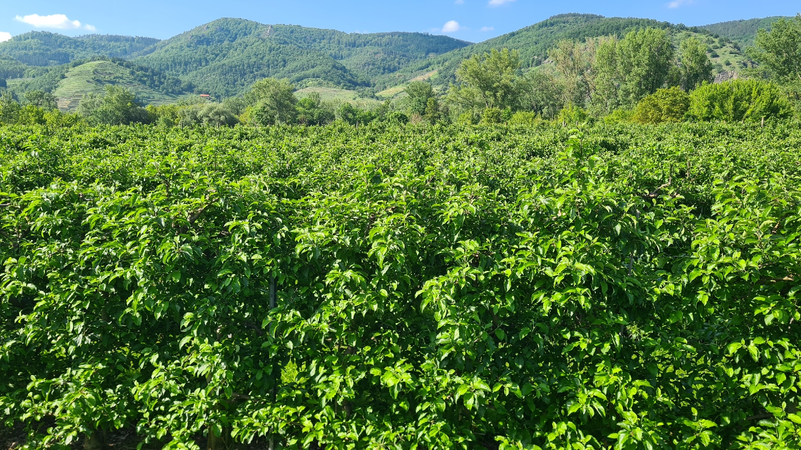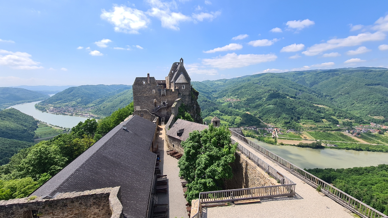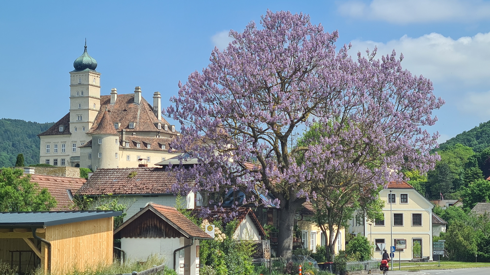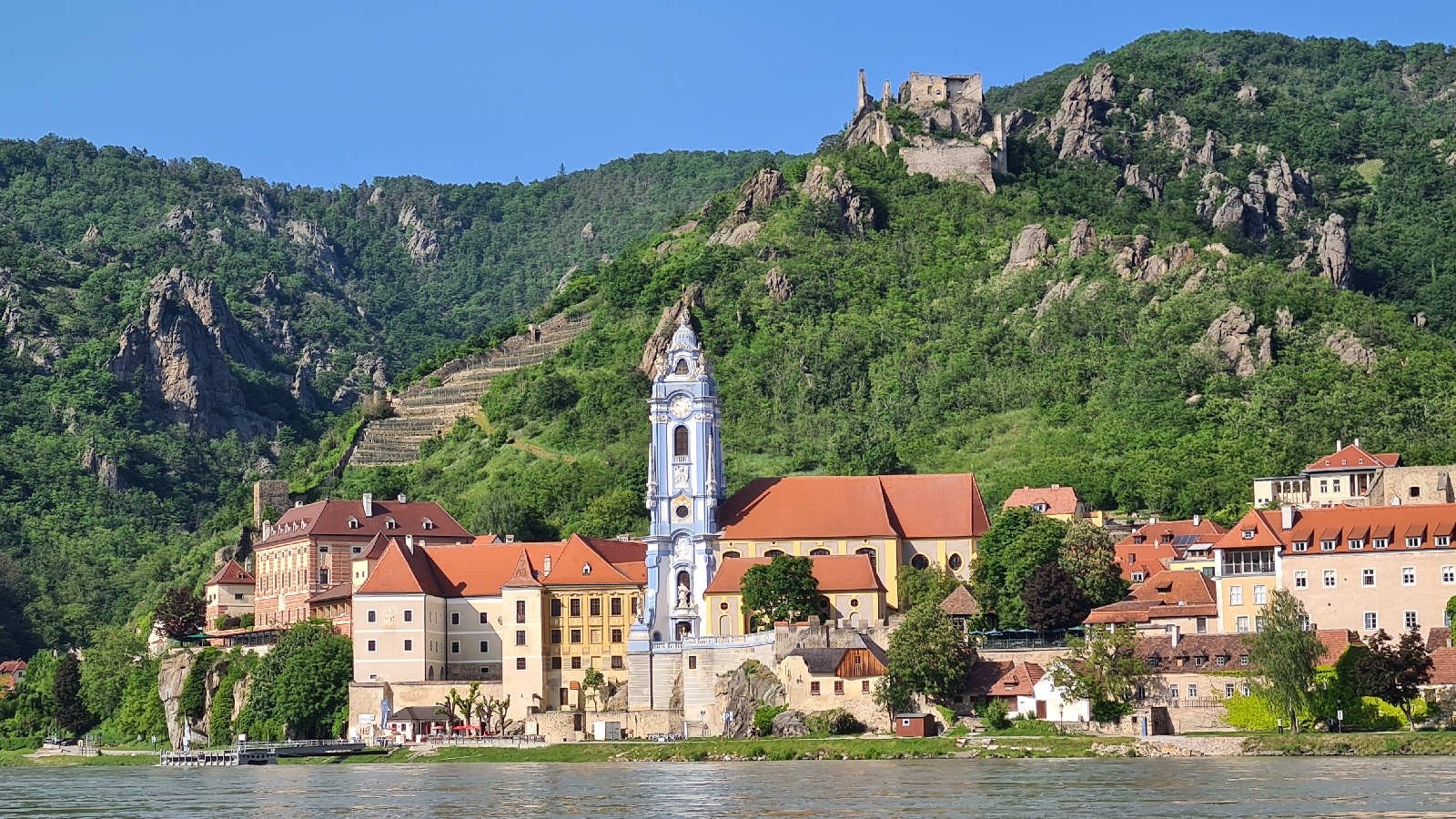 Bei Melk beginnt die Wachau – die Landschaft ist nun geprägt von Weinanbau und Marillenbäumen. Wir entscheiden kurzfristig, nicht wie geplant am linken Ufer weiterzufahren, sondern rechts zu bleiben.