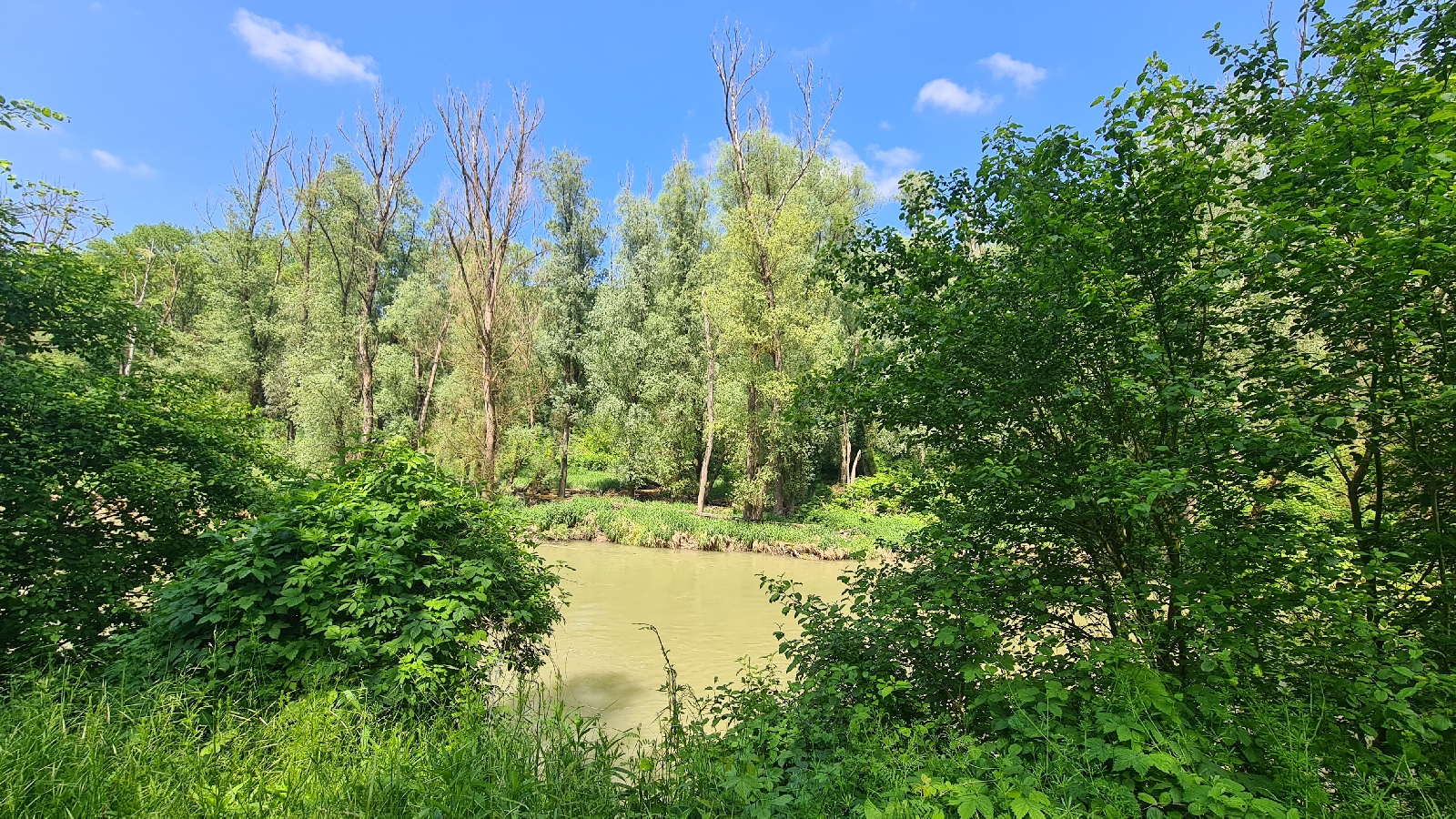 Grauer Himmel und kühle 16 Grad – und unser Freund, der Gegenwind! Nicht, daß wir ihn vermisst hätten… Es soll immerhin trocken bleiben. Wir starten auf dem Deich Richtung Melk.