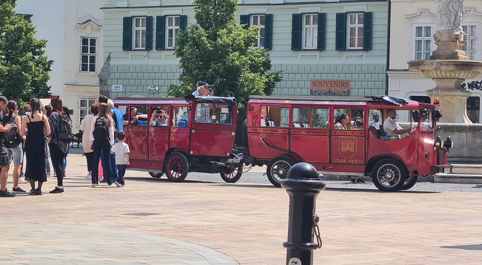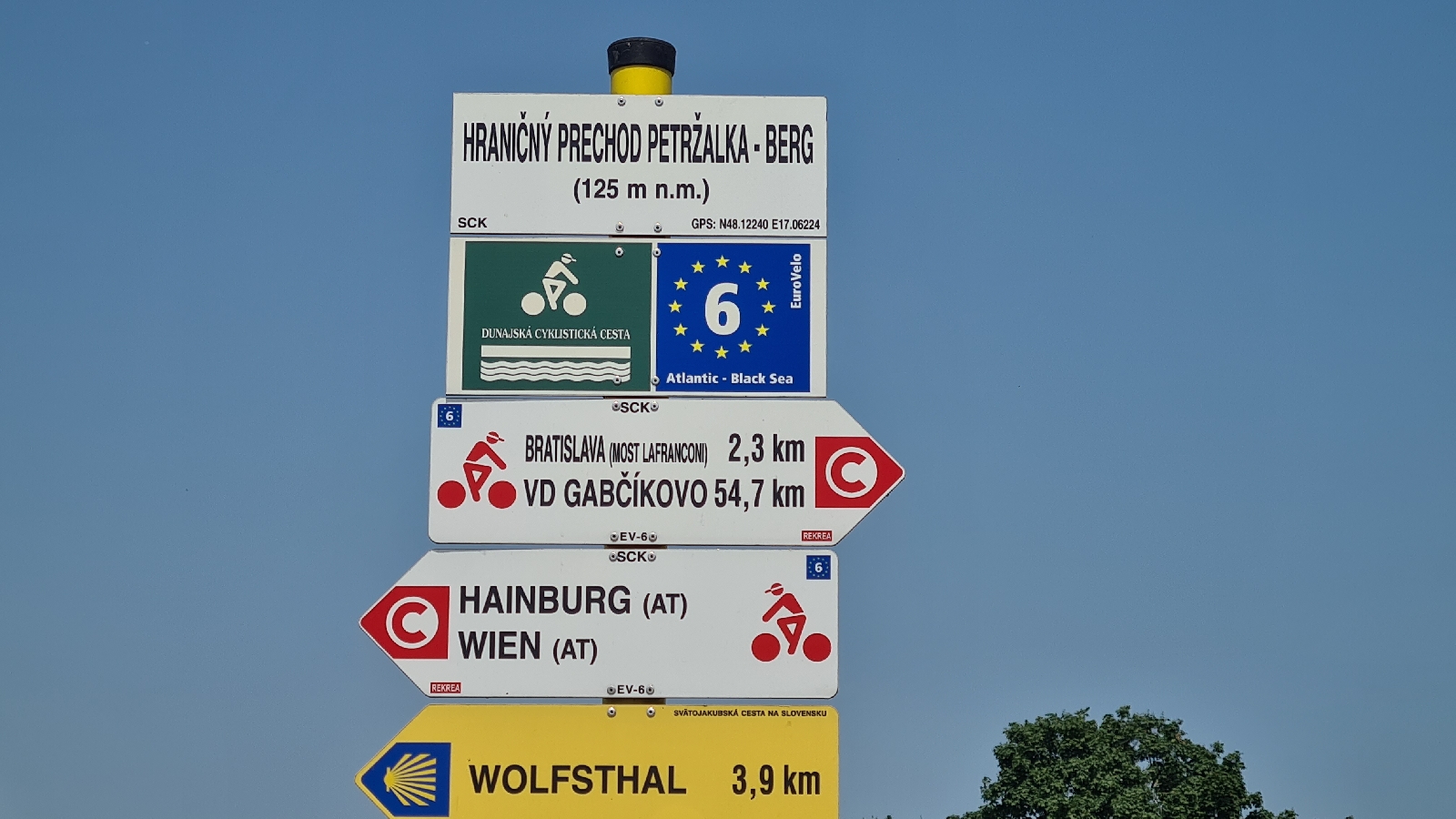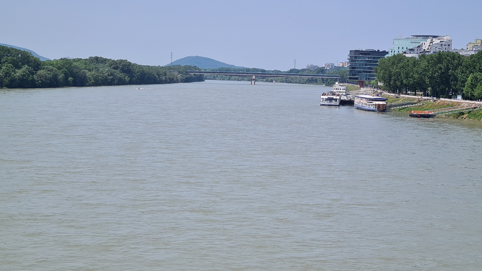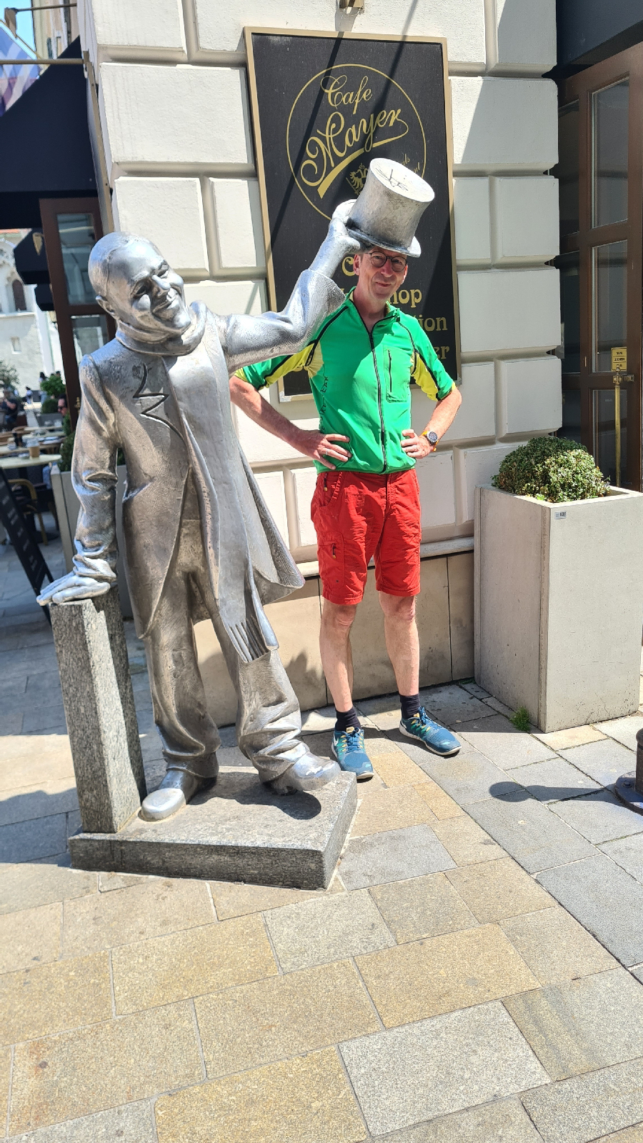 Abfahrt Bratislava bei 20 Grad und strahlendem Sonnenschein! Erstmal 2. Frühstück, das erste war recht eilig, wir hatten es für 7:30 bestellt, es kommt um 8:00, um 8:15 wollen wir los zum Wiener Hauptbahnhof.