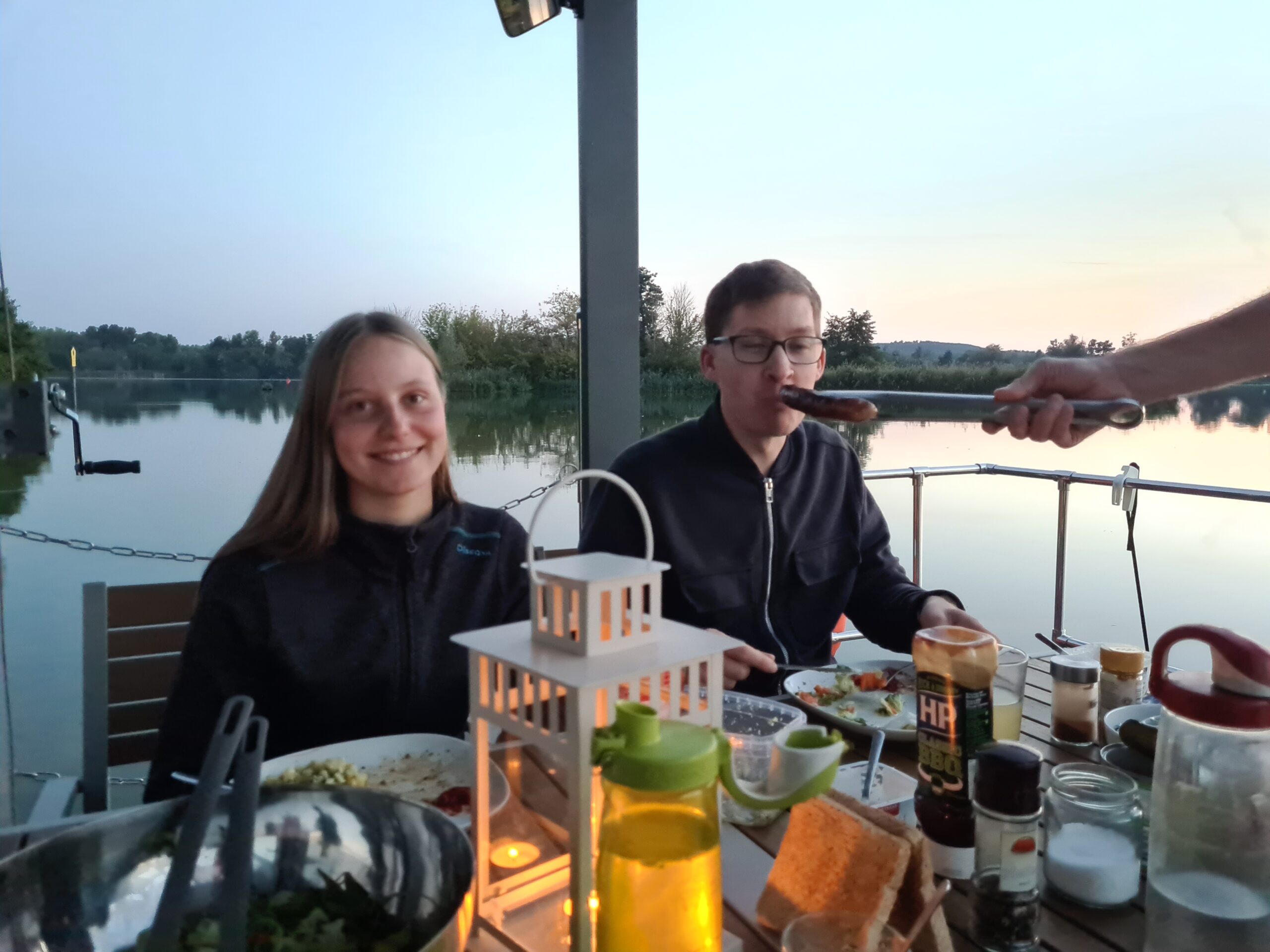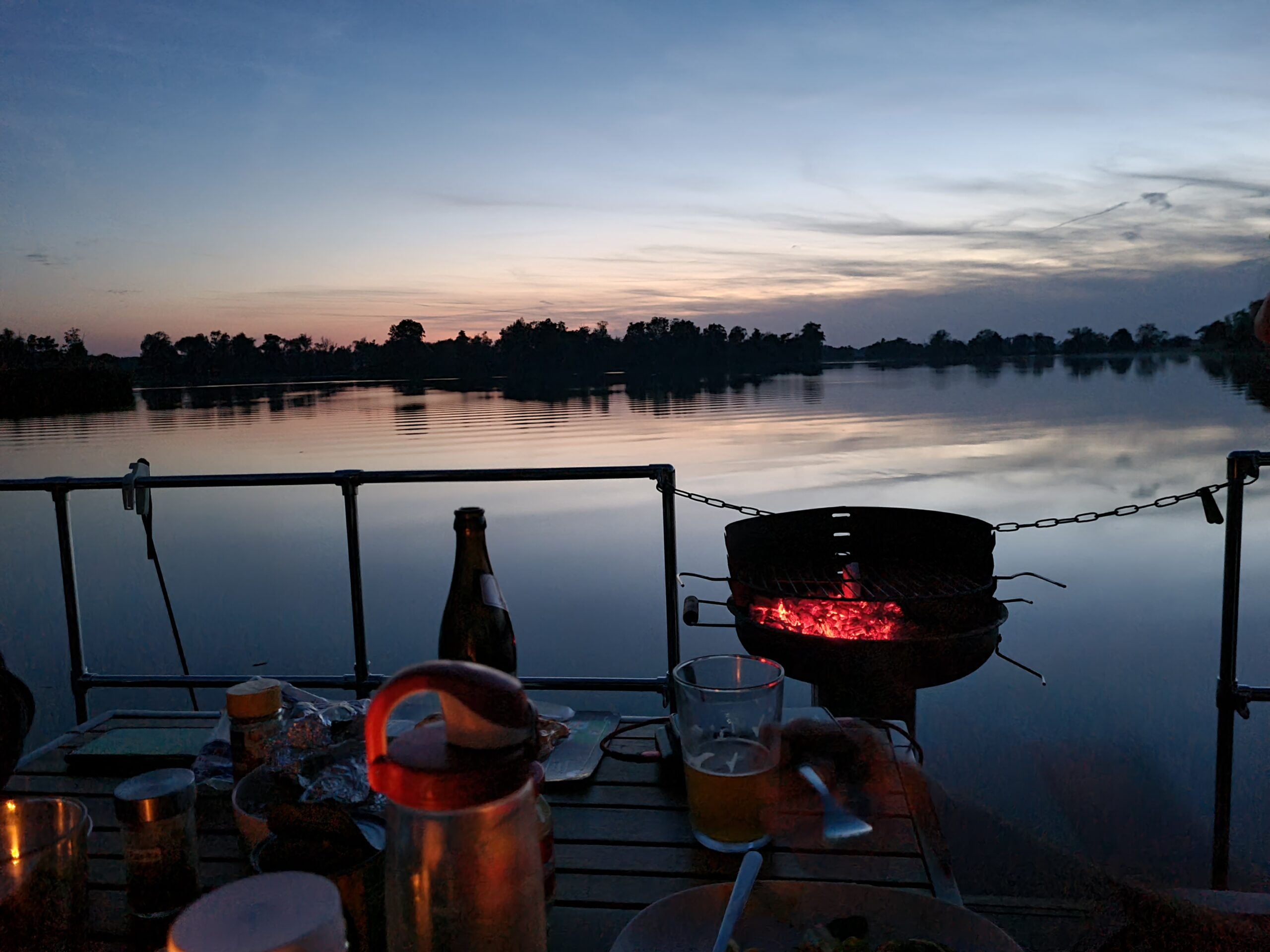 Zum Abendessen wird nochmal gegrillt, mit großem Salat und Backkartoffeln. Die Gänse machen auch heute wieder viel Spektakel, eine Kröte quakt in der Nähe, einige Schwäne ziehen vorbei, sehr idyllisch!