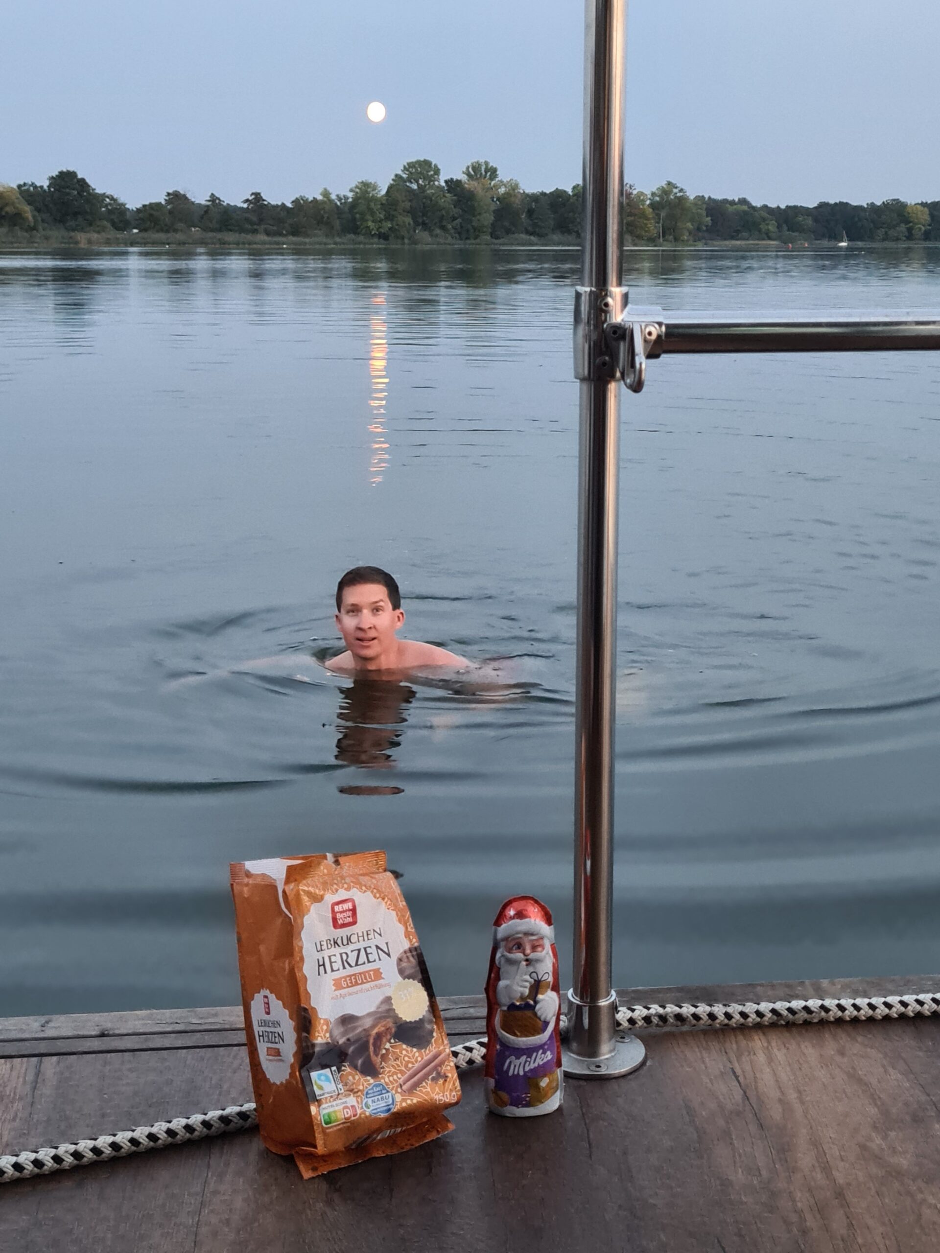 Es ist etwas kühler geworden…Völlig gechilltUnd nun noch – ihr ahnt es schon – die obligatorischen Sonnenuntergangsbilder!Schwimmen im Mondschein – und als Belohnung gibt es gefüllte LebkuchenherzenFast Vollmond!