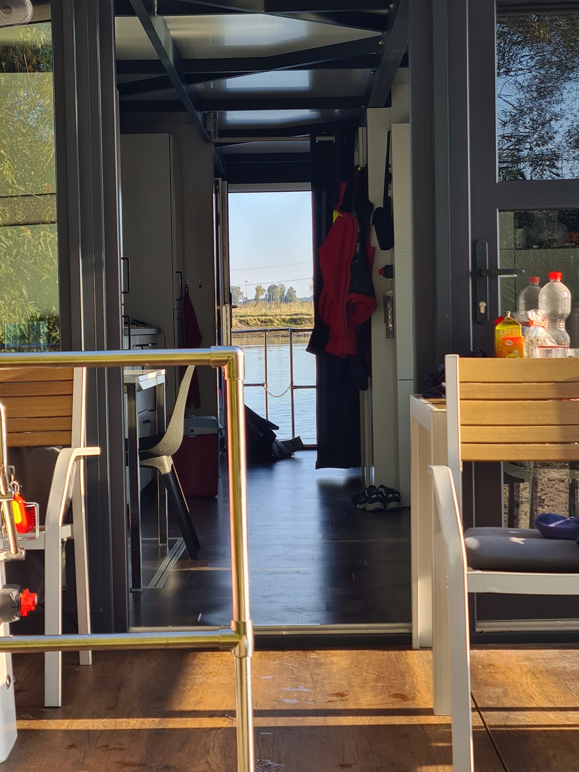 Heute gibt es ein Übungsprogramm: Axel übt das Anlegen vor der Schleuse, ich fahre in die Schleuse, lege dort an und fahre wieder raus – klappt alles recht gut unter der wachsamen Anleitung von Tobi!