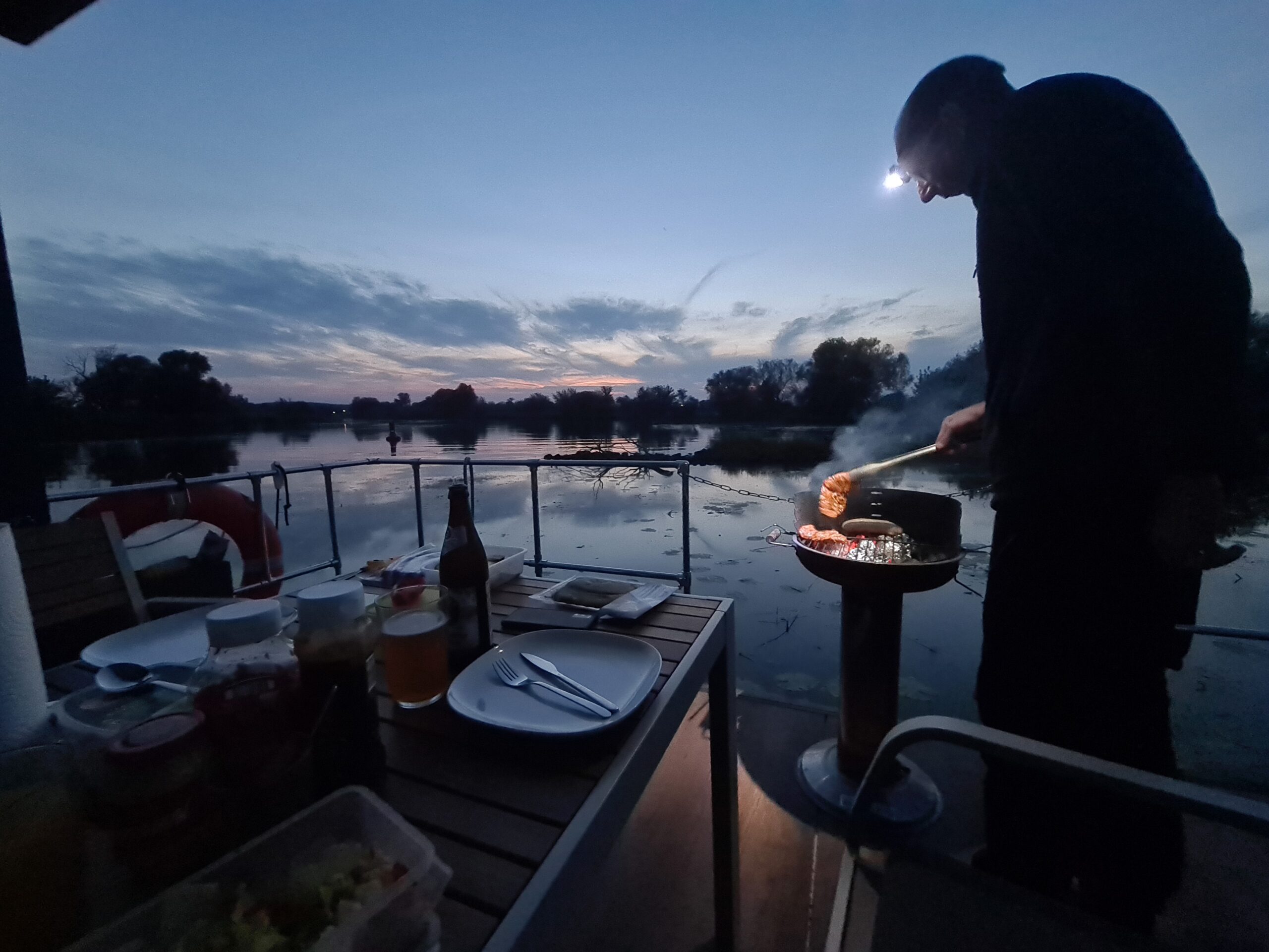 Frühstück wieder draußen, ideale Temperatur, sonnig, wunderschön! Heute müssen wir unbedingt vor 17:30 Uhr an der Schleuse Bahnitz sein, damit wir es morgen zu 9 Uhr nach Milow schaffen. Also düsen wir etwas früher los.