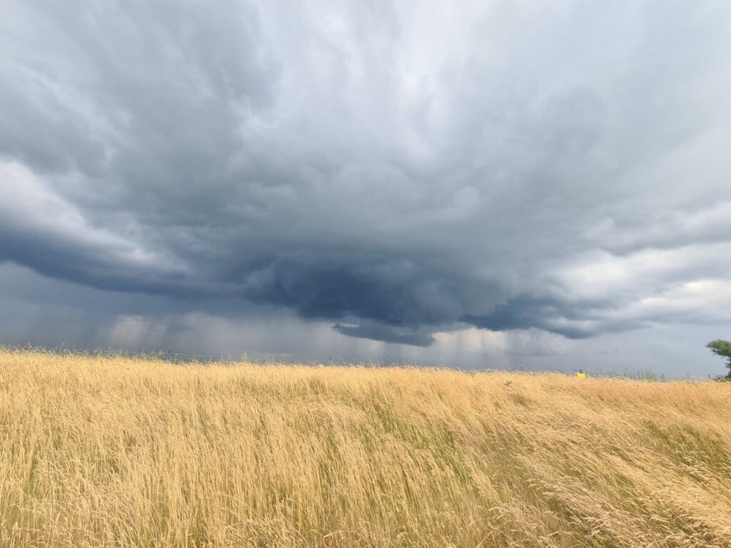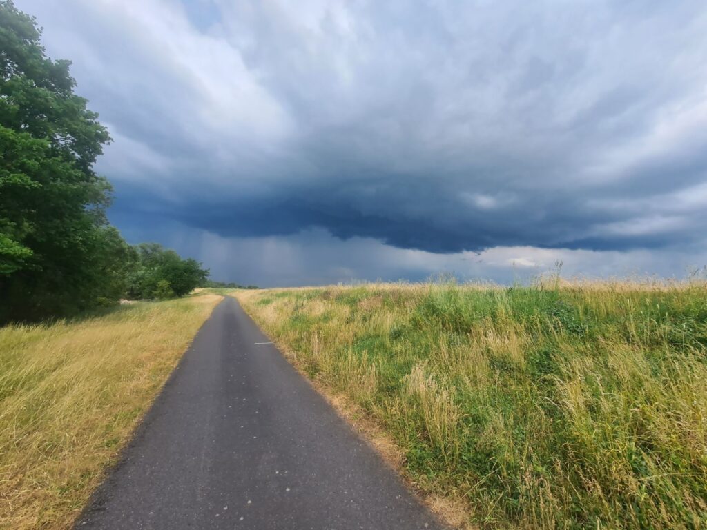 Wetter: 21 Grad, am Rand des Gewitters kalter Wind, in der Sonne gut warm