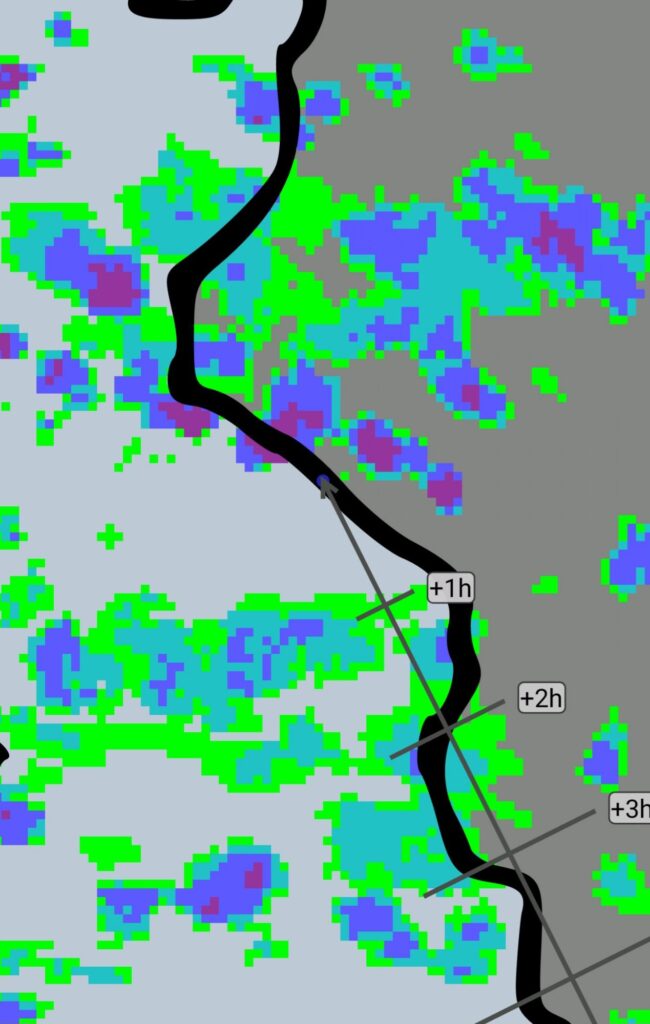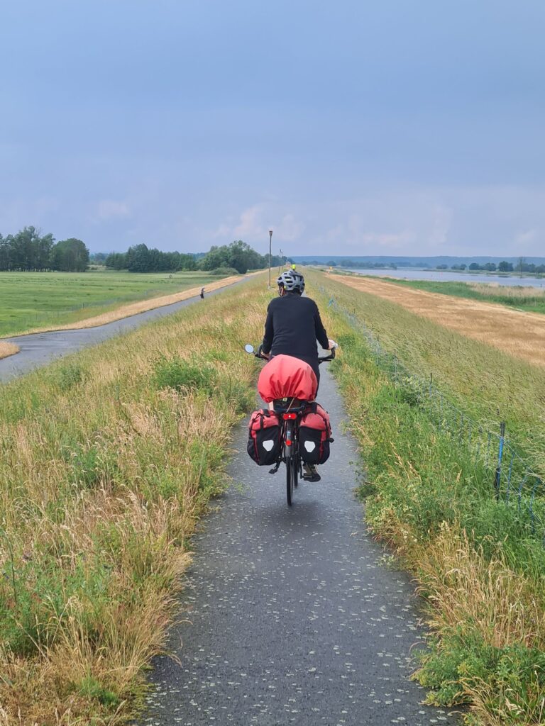 Heute wieder pünktlicher Start bei super Wetter, allerdings spricht die Vorhersage von hoher Gewittergefahr. Wir haben ja gute Regensachen…