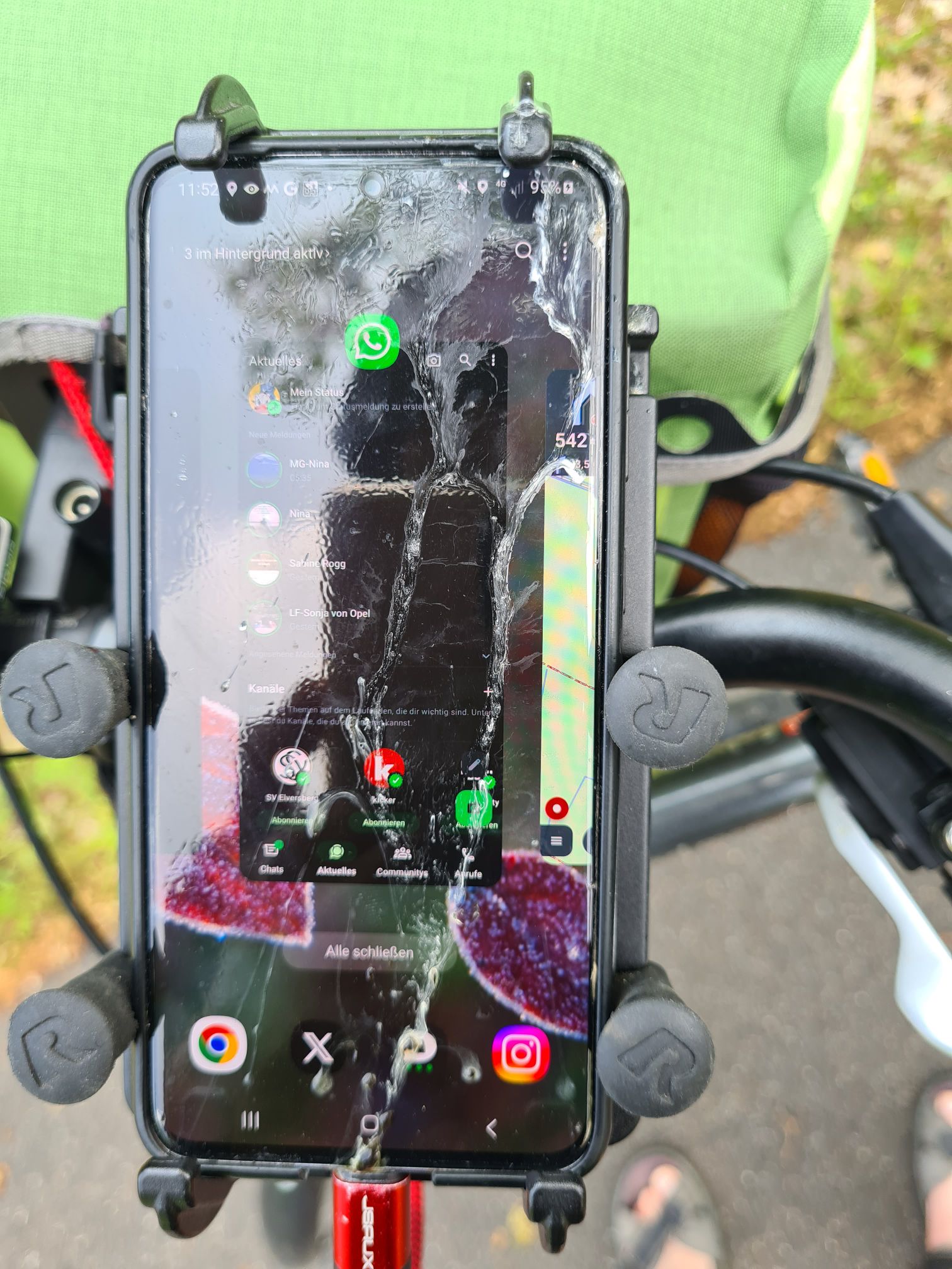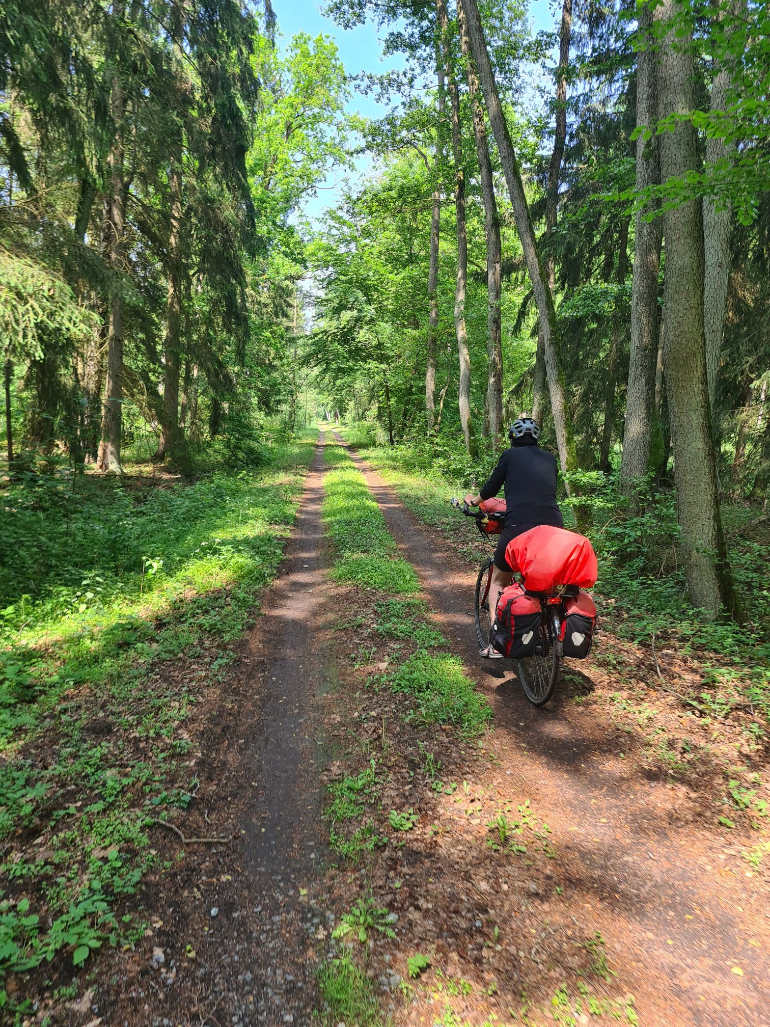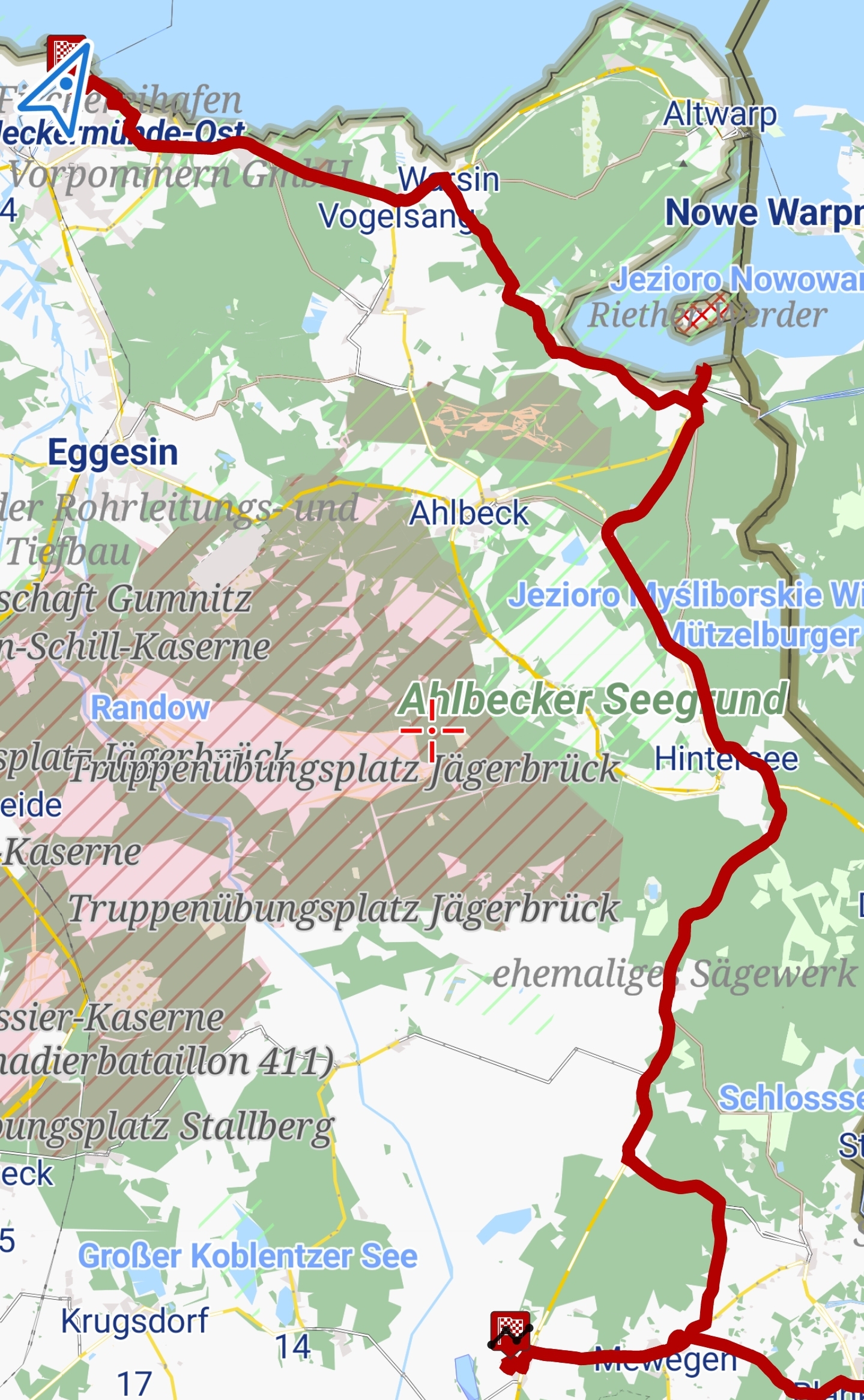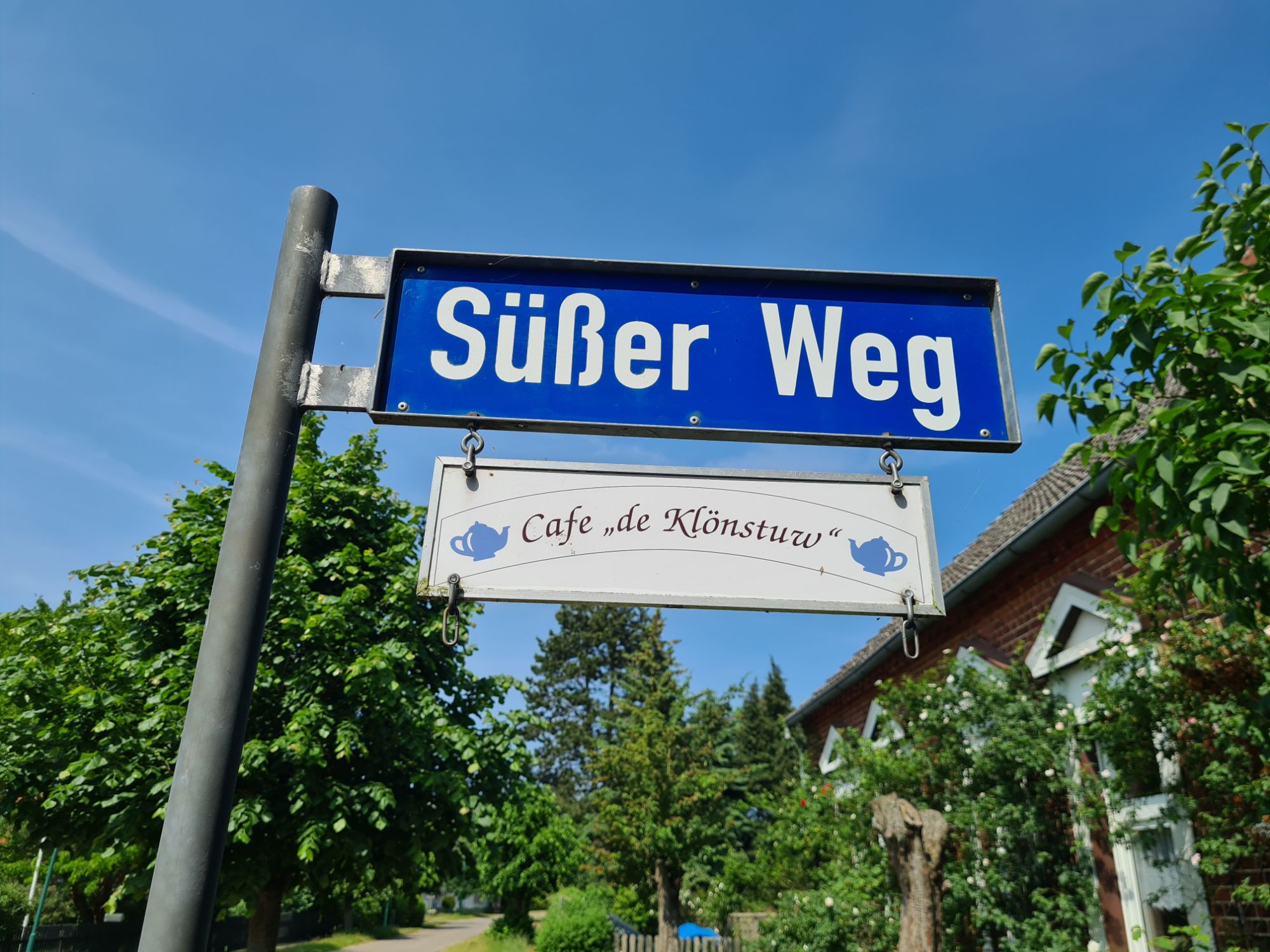 Axels Handy ist beschissen worden, der arme Vogel hat Durchfall! Also erstmal putzen…Schöner Weg auf der alten Bahntrasse der Randower Bahn, die schon seit 1945 nicht mehr befahren wirdHier wohnen 6 der 7 Zwerge – in LudwigshofHafen in RiethTolles kleines Café in Rieth, sogar mit Hafermilch, und köstlichem selbstgebackenem Kuchen2 Cappuccino, 2 Latte und 3 Stück Kuchen für 19,70 Euro, in einem idyllischen Garten