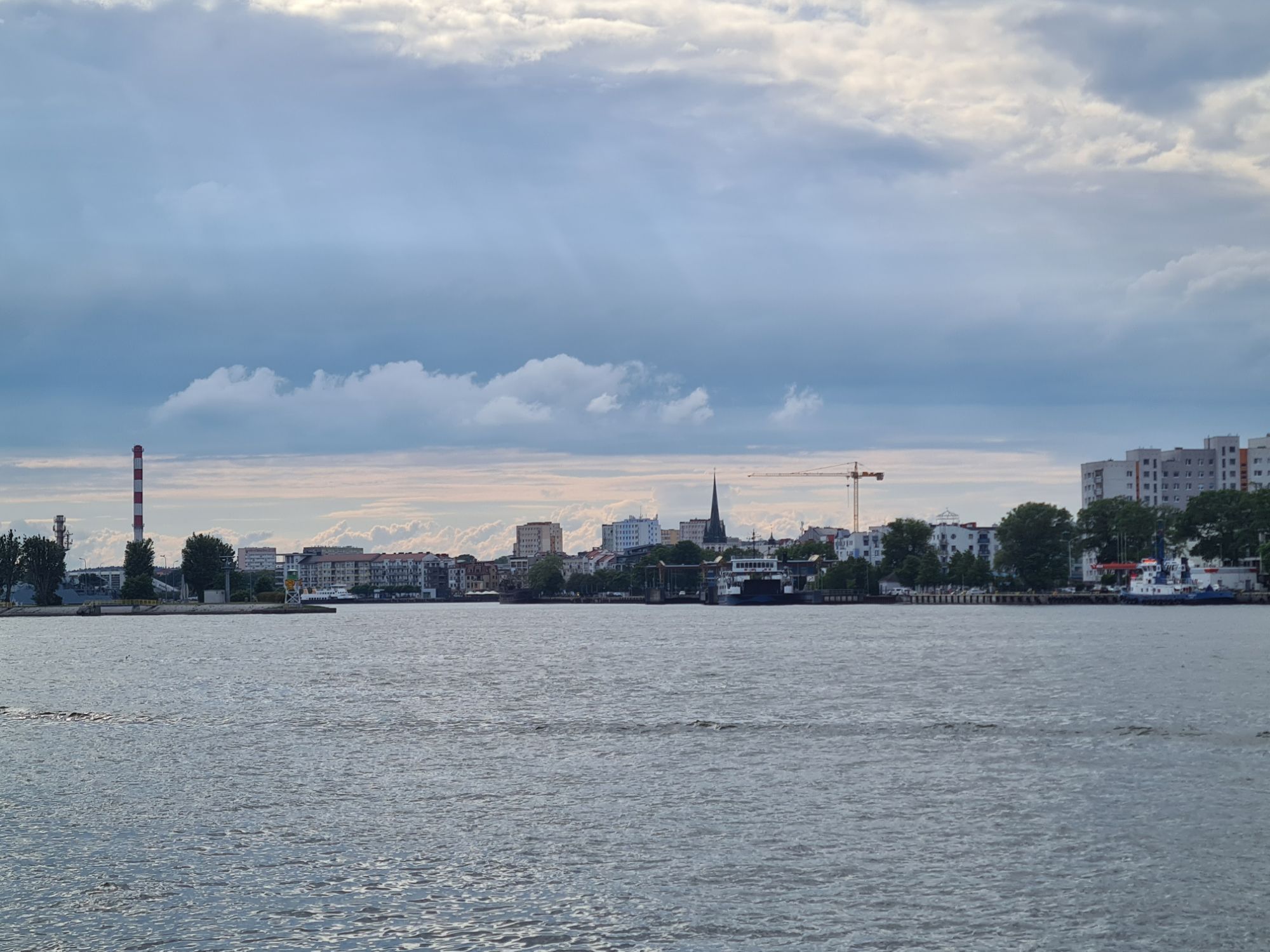 Wetter: 20 Grad, teils böiger Wind, insgesamt wenig Wind, vormittags sonnig, nachmittags teils bedeckt, Unwetterwarnung für Misdroy
