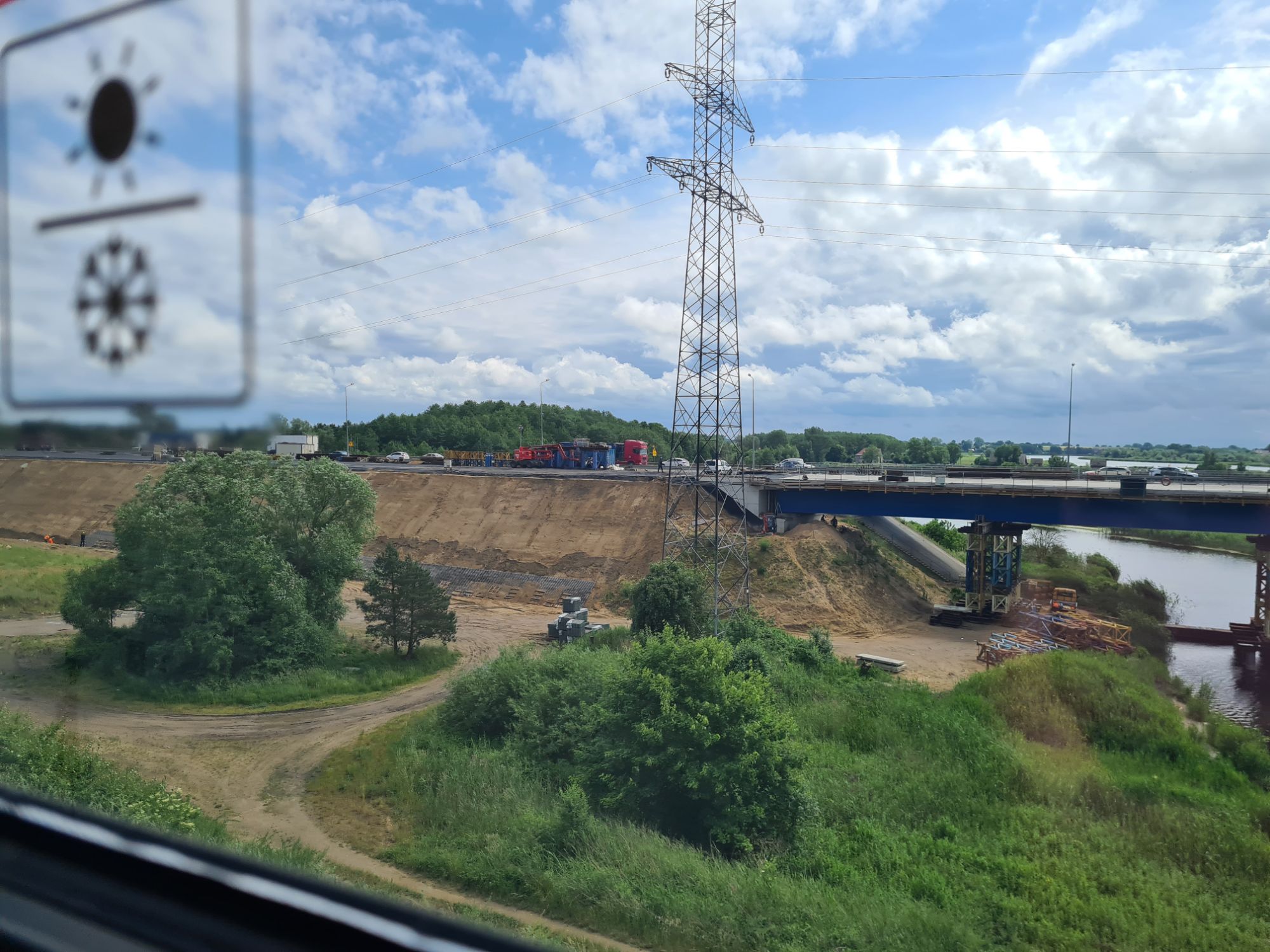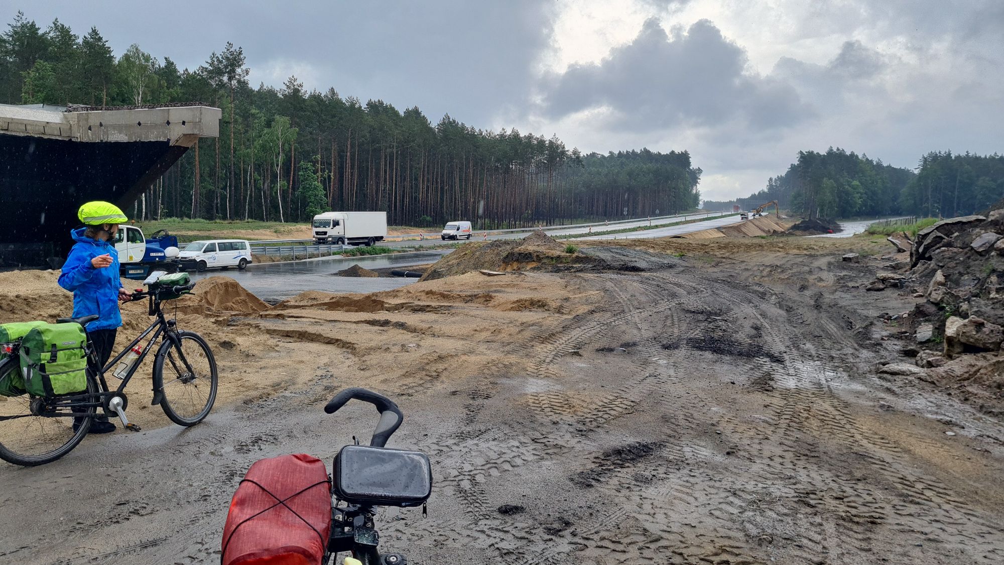Der oben gezeigte tolle Weg verwandelt sich erst in einen Waldweg, dann stehen wir plötzlich an einer Baustelle. Die bestehende Autobahn wird komplett erneuert, inklusive aller Brücken und Zufahrten.