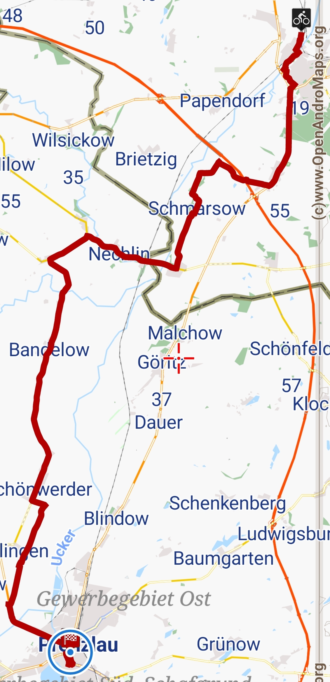 Start in Pasewalk Irgendwo mittendrin Unser Rastplatz in Schönwerder, ein Café gibt es auf der ganzen Strecke nicht, erst in Prenzlau werden wir fündig Mohn und KörnblümchenEtappen-Abschluß im Klostercafe in Prenzlau mit sehr leckerem Kuchen und HafermilchlatteUnser Hotel, nicht wirklich ruhig gelegen Abendstimmung am UckerseeDas Mitteltor und dahinter die St.Marien Kirche Meine Bißverletzung heilt recht gut, am oberen Gelenk noch schmerzhaft und geschwollen