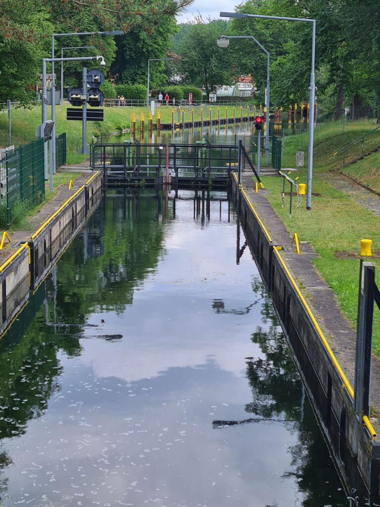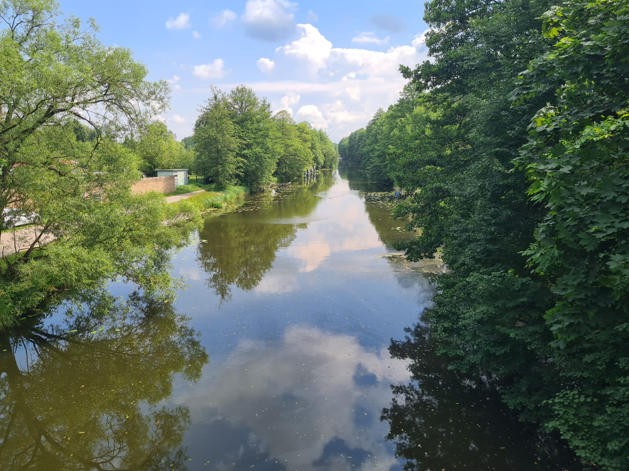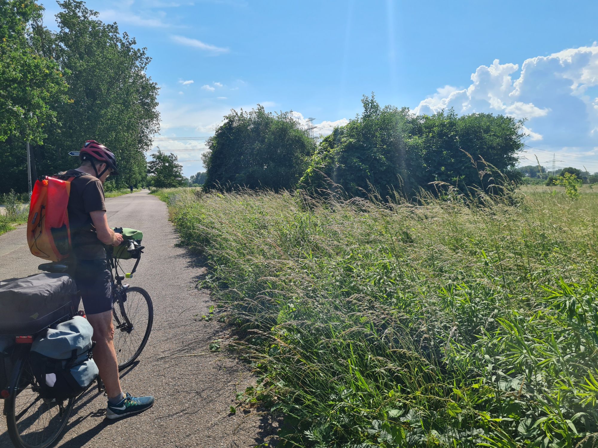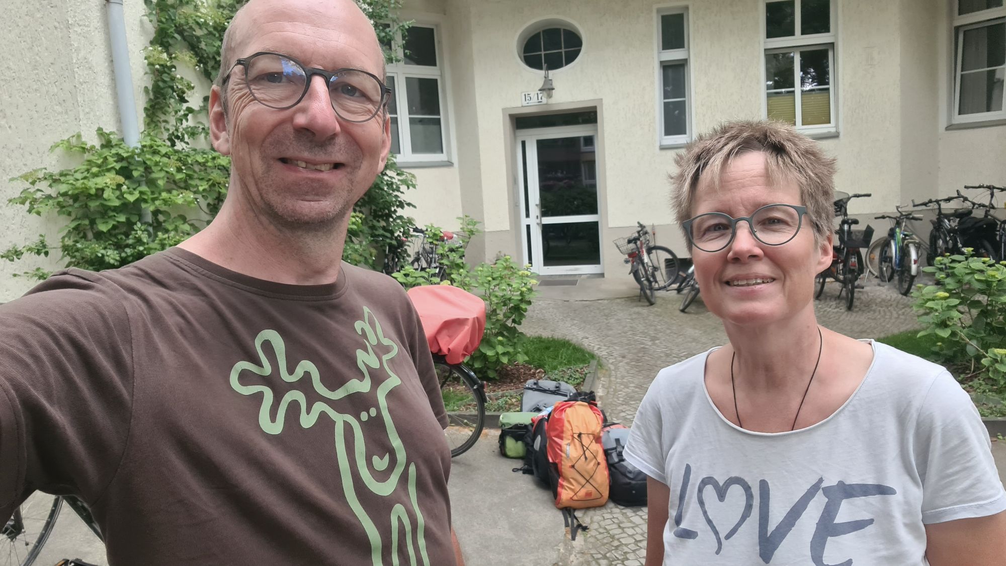 Heute starten wir etwas früher, der Wetterfrosch kündigt wie so oft Regen und Gewitter an. Noch ist unklar, wie weit wir heute fahren wollen. Mindestens bis Bernau, so der Plan, mit kurzem Stop in Biesenthal, um dort den Arbeitslaptop von ni abzuholen. Mal sehen, wie weit wir regenfrei kommen!