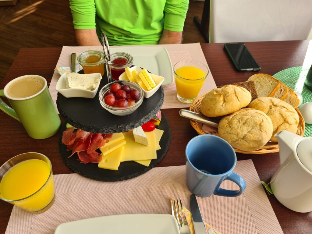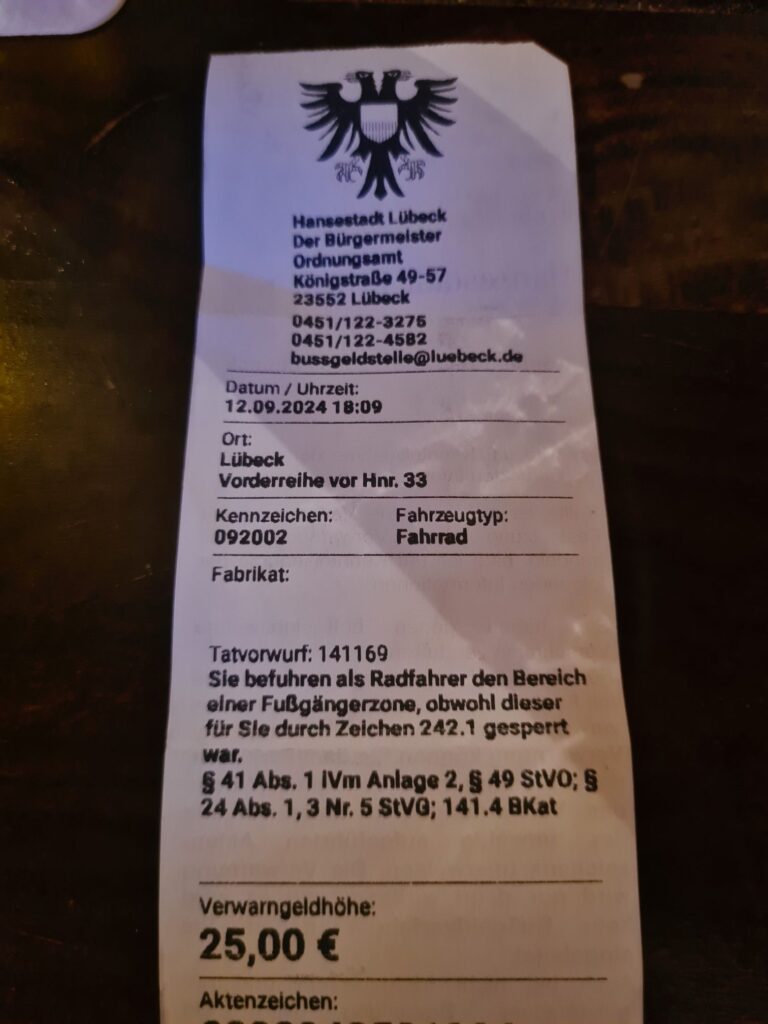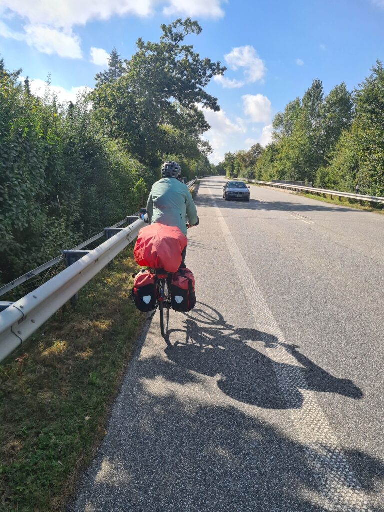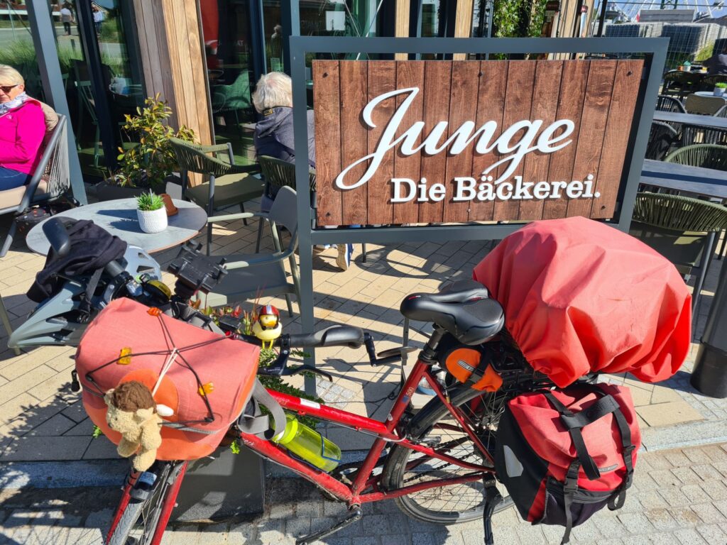 Leckeres Frühstück, plus Joghurt und Müsli-ZubehörDer Radweg geht nach rechts – war klar, oder? Höchste Zeit für ein Stück aufmunternden Kuchen!!!Nach der Kuchen-, Latte- und frisch gepresster Orangesaft- Pause in Grömitz geht’s tatsächlich etwas besser. Ich hab ja vorsichtshalber schonmal nach ner Bahnverbindung geschaut (gibt keine)…..NeustadtOstseeküstenradweg, Sektion Überlebenstraining – der Radweg führt wirklich auf diese viel befahrene Straße! Da rauschen die Autos mit bis zu 100km/h an einem vorbei….Da dann vielleicht doch (mal wieder) die Umleitung nehmen…Kurz vor Travemünde: Radweg mit viel Aussicht Travemünde 400m vorm Ziel, aber Kommissarin Schultheiß hat Gnade walten lassen, weil wir so nett waren und das dann in ihrem Ordnungswidrigkeitenaufzeichnungsgerät wieder gelöscht.