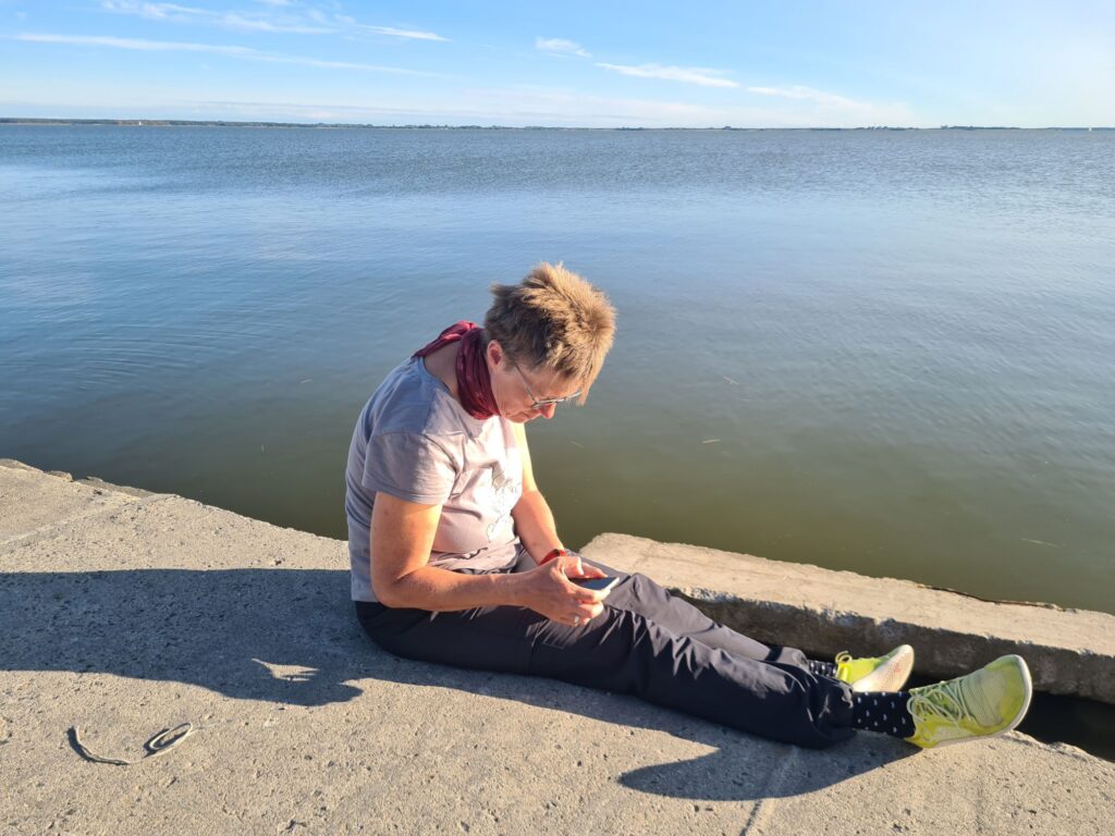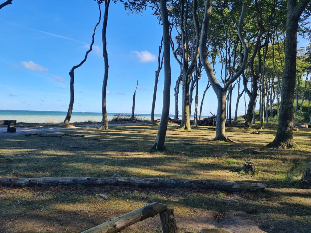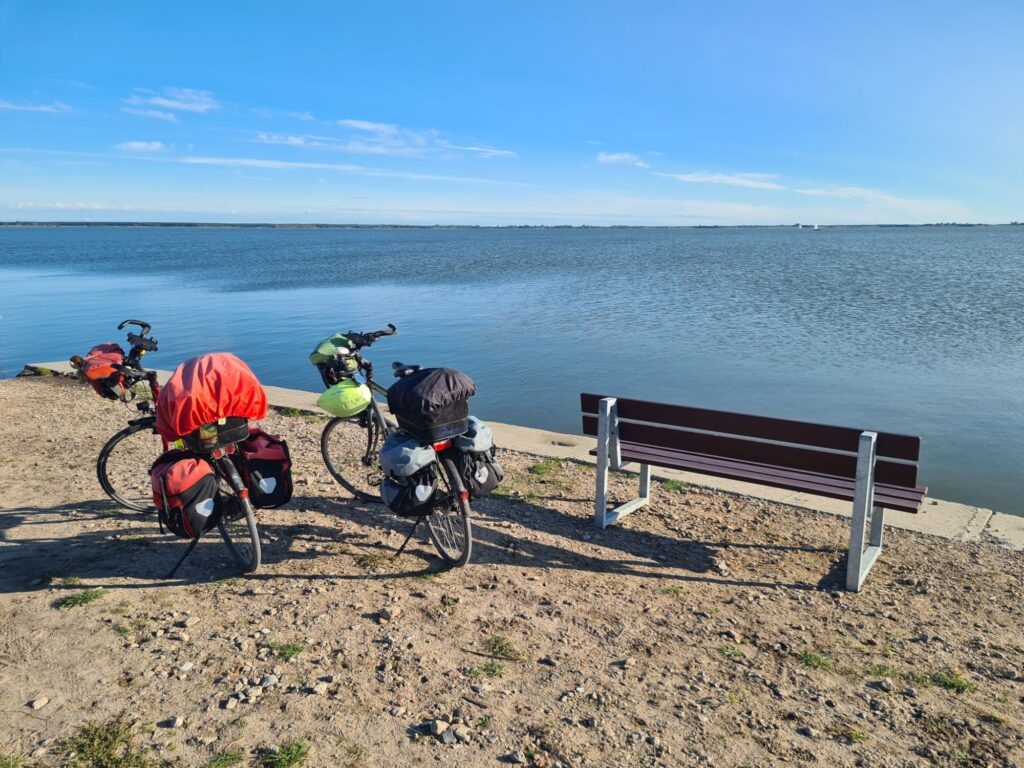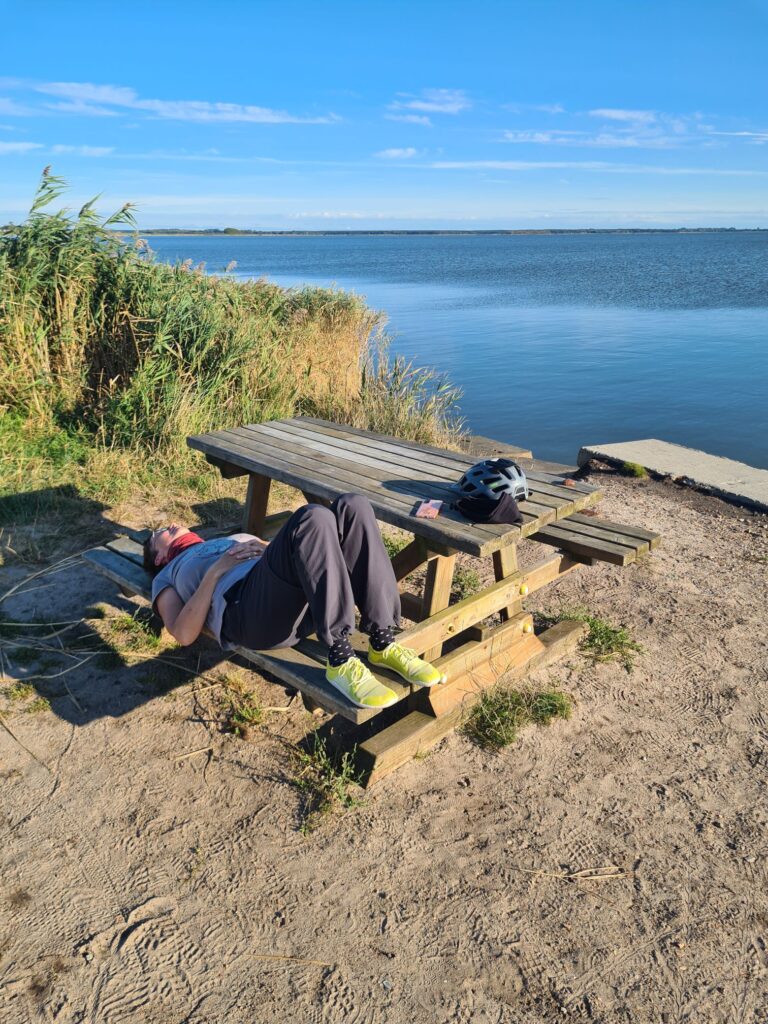 Es geht doch nix über einen heißen grünen Tee am Morgen!Iiiiiiiiiiiiieeeeeeeehhhhhhh!Gespensterwald bei Nienhagen, immer wieder schön!Warnemünde Mit der Fähre über die Warnow Die mitreisenden (oder: mitreißenden) SchattenfahrerEin für heute letzter Blick zur Ostsee, jetzt führt uns der Weg an den Bodden, was windtechnisch gesehen sehr gut ist.Chill-out an der Bank für die RäderChill-out auf der Bank für NinaDer Lebkuchenantrieb schaut aus mehr.Noch mehr chill-out für Nina, es ist wundervoll ruhig und warm!Soooo schön ist es hier!….nun aber weiter, noch 7km bis zur Unterkunft!