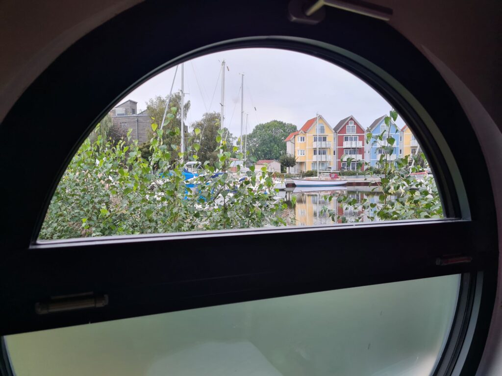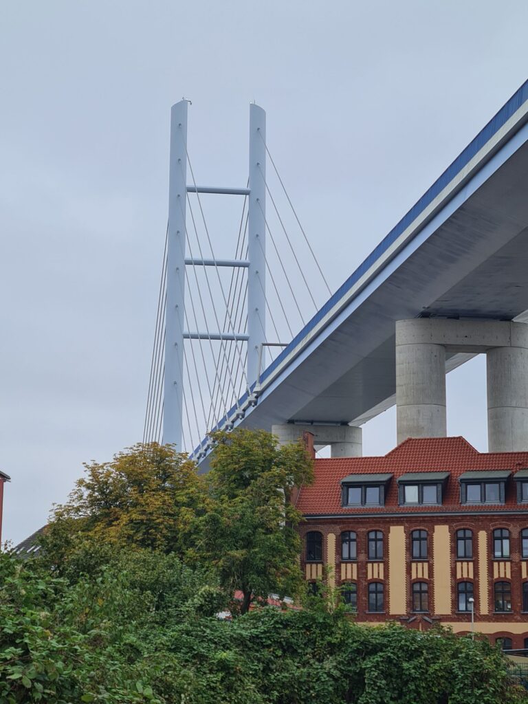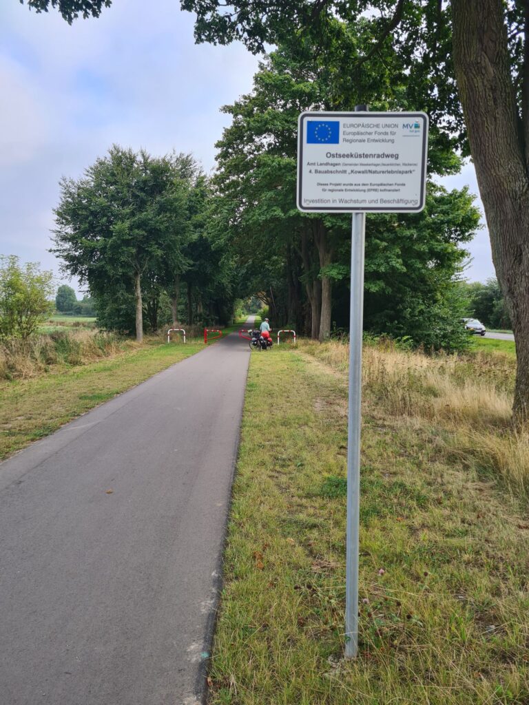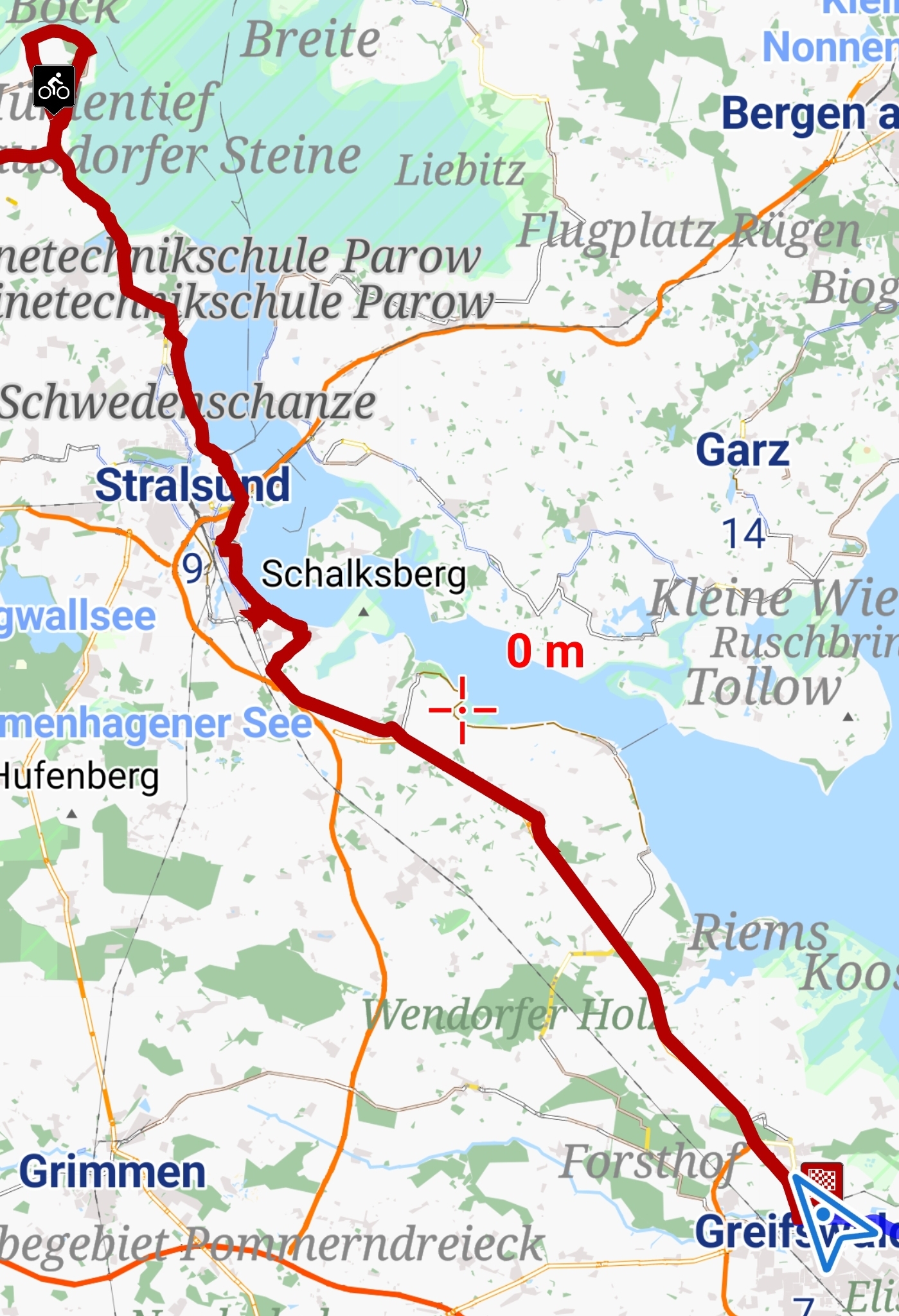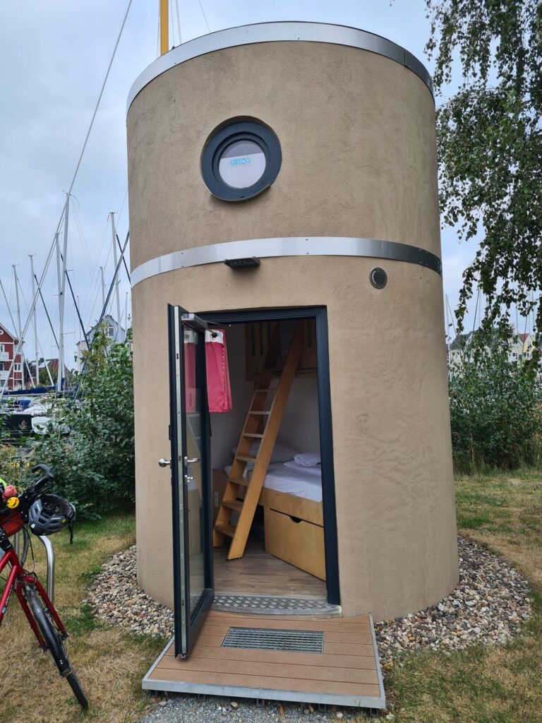 Abkürzung jenseits der Straßen: Slalom im Wald. Ganz vorne: NinaNochmal in groß Kurz vor Stralsund, Blick auf die RügenbrückeUnsere Hertha….. ! Leider nicht blau-weiß. (der Vereinsname von Hertha stammt übrigens auch von einem Schiff, das bei Gründung 1892 zufällig vorbei fuhr…)Gorch Fock 1Auf der Hafeninsel, links das Ozeaneum, rechts Axel Die RügenbrückeDann: KopfsteinpflasterKeine Ahnung, ob das noch Lavendelblüten sind… Jedenfalls sieht es schön!Daneben: Kopfsteinpflaster Mehr Kopfsteinpflaster Kopfsteinpflaster bergaufNach 15km dann die Erlösung dank sinnvollem Einsatz von EU-Fördermtteln (bei so viel EU-Förderungen im Osten Deutschlands, was man an vielen Hinweisschildern sieht, stimmt es einen im übrigen nachdenklich, warum hier so viele einen Dexit wollen – und ja: die EU-Bürokratie könnte deutlich kleiner sein…)Unsere Unterkunft die nächsten beiden Nächte: ein Slube, bestehend aus Beton-BrunnenringenSlube-Dorf, fast wie bei den Schlümpfen, aber die Dächer sind anders2 große Betten, wenig Stauraum, echt witzig!!Blick aus dem oberen Bett, man beachte den Fernseher Und so sieht es vor dem kleinen Fenster aus, der Yachthafen von Greifswald