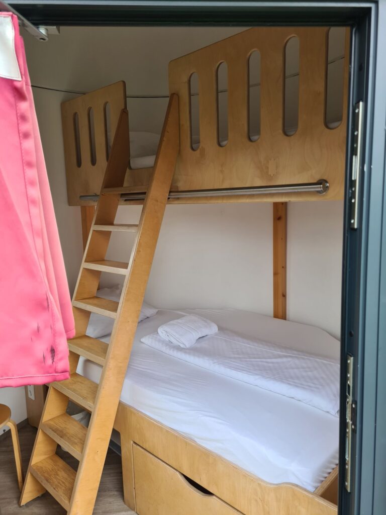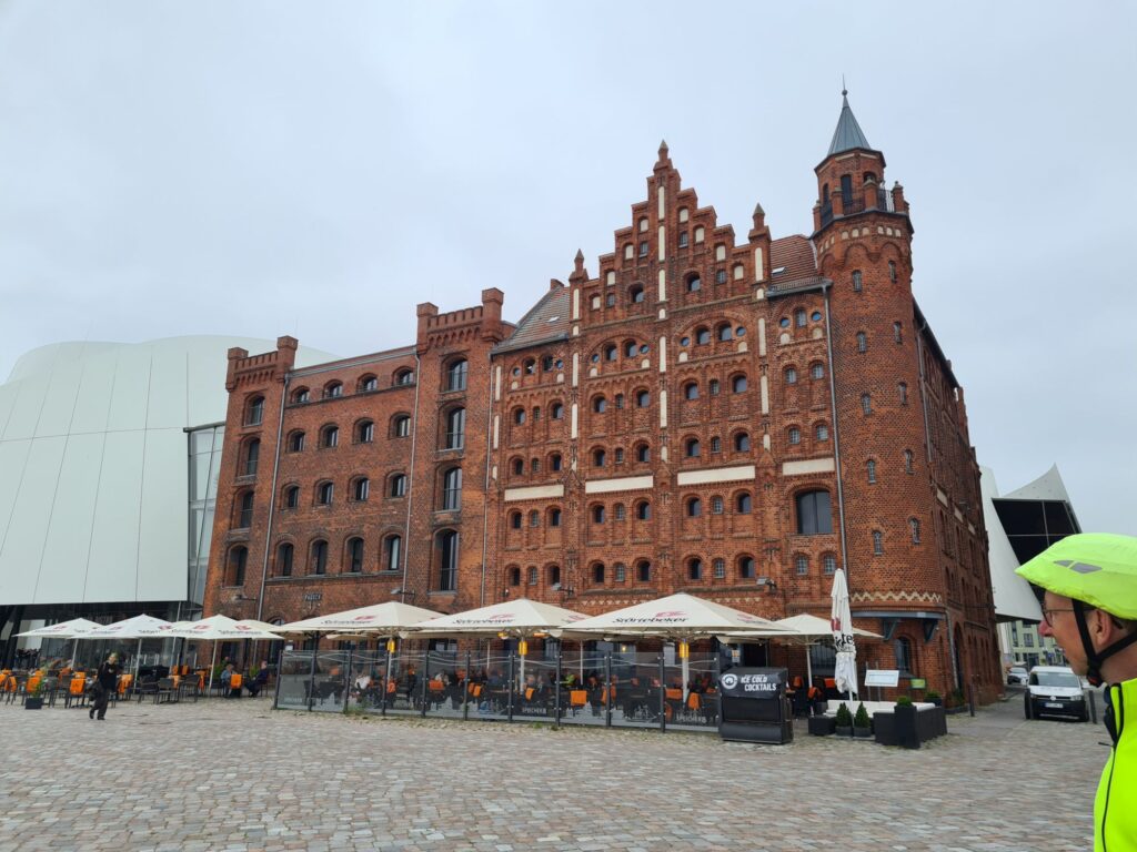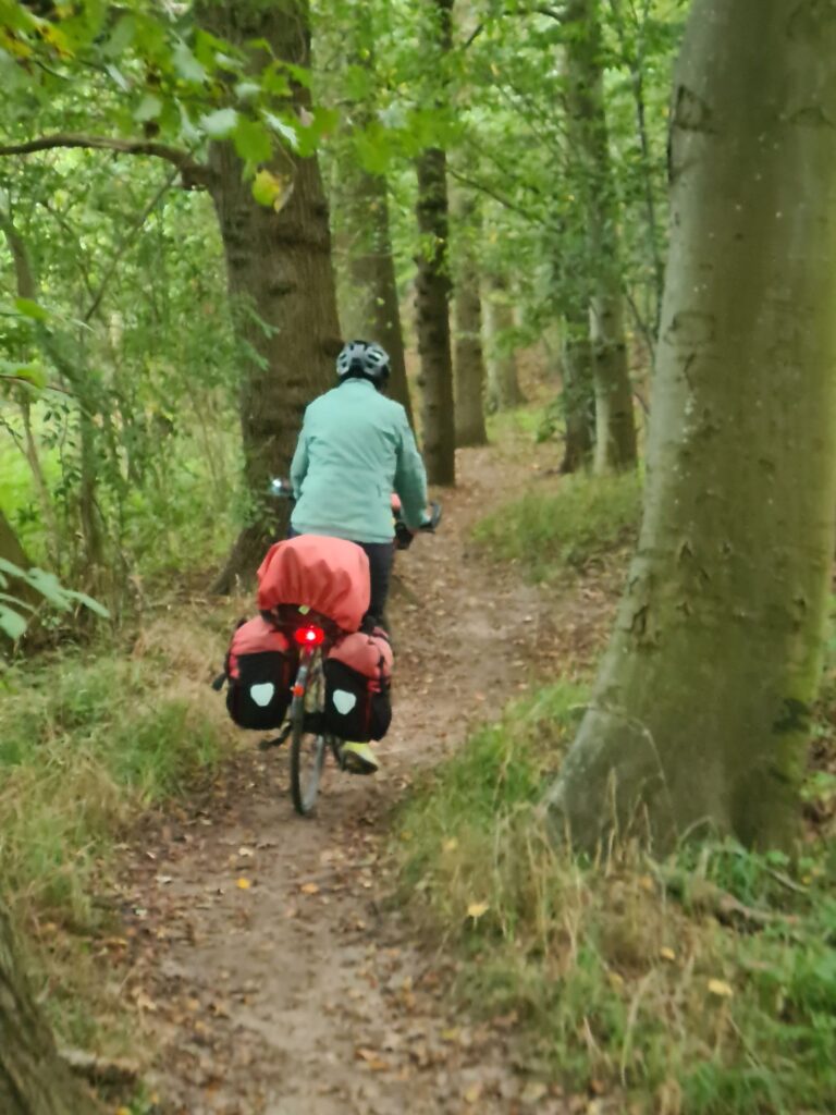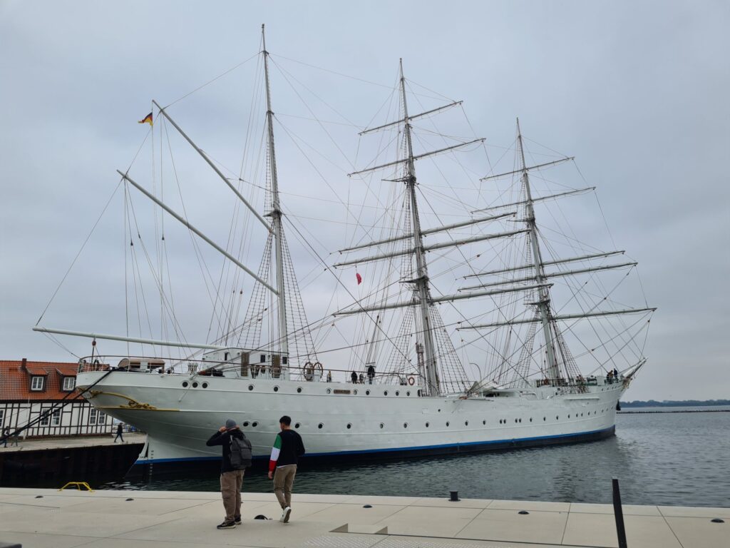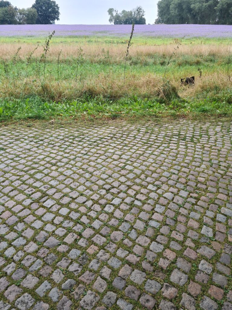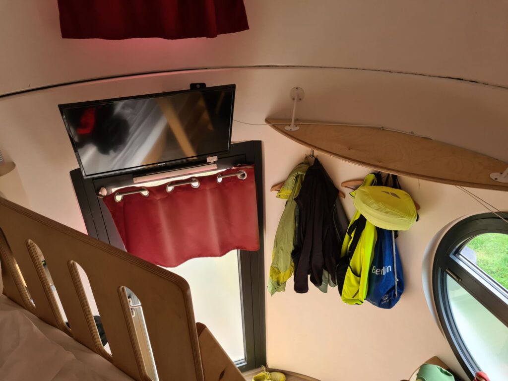 Abkürzung jenseits der Straßen: Slalom im Wald. Ganz vorne: NinaNochmal in groß Kurz vor Stralsund, Blick auf die RügenbrückeUnsere Hertha….. ! Leider nicht blau-weiß. (der Vereinsname von Hertha stammt übrigens auch von einem Schiff, das bei Gründung 1892 zufällig vorbei fuhr…)Gorch Fock 1Auf der Hafeninsel, links das Ozeaneum, rechts Axel Die RügenbrückeDann: KopfsteinpflasterKeine Ahnung, ob das noch Lavendelblüten sind… Jedenfalls sieht es schön!Daneben: Kopfsteinpflaster Mehr Kopfsteinpflaster Kopfsteinpflaster bergaufNach 15km dann die Erlösung dank sinnvollem Einsatz von EU-Fördermtteln (bei so viel EU-Förderungen im Osten Deutschlands, was man an vielen Hinweisschildern sieht, stimmt es einen im übrigen nachdenklich, warum hier so viele einen Dexit wollen – und ja: die EU-Bürokratie könnte deutlich kleiner sein…)Unsere Unterkunft die nächsten beiden Nächte: ein Slube, bestehend aus Beton-BrunnenringenSlube-Dorf, fast wie bei den Schlümpfen, aber die Dächer sind anders2 große Betten, wenig Stauraum, echt witzig!!Blick aus dem oberen Bett, man beachte den Fernseher Und so sieht es vor dem kleinen Fenster aus, der Yachthafen von Greifswald