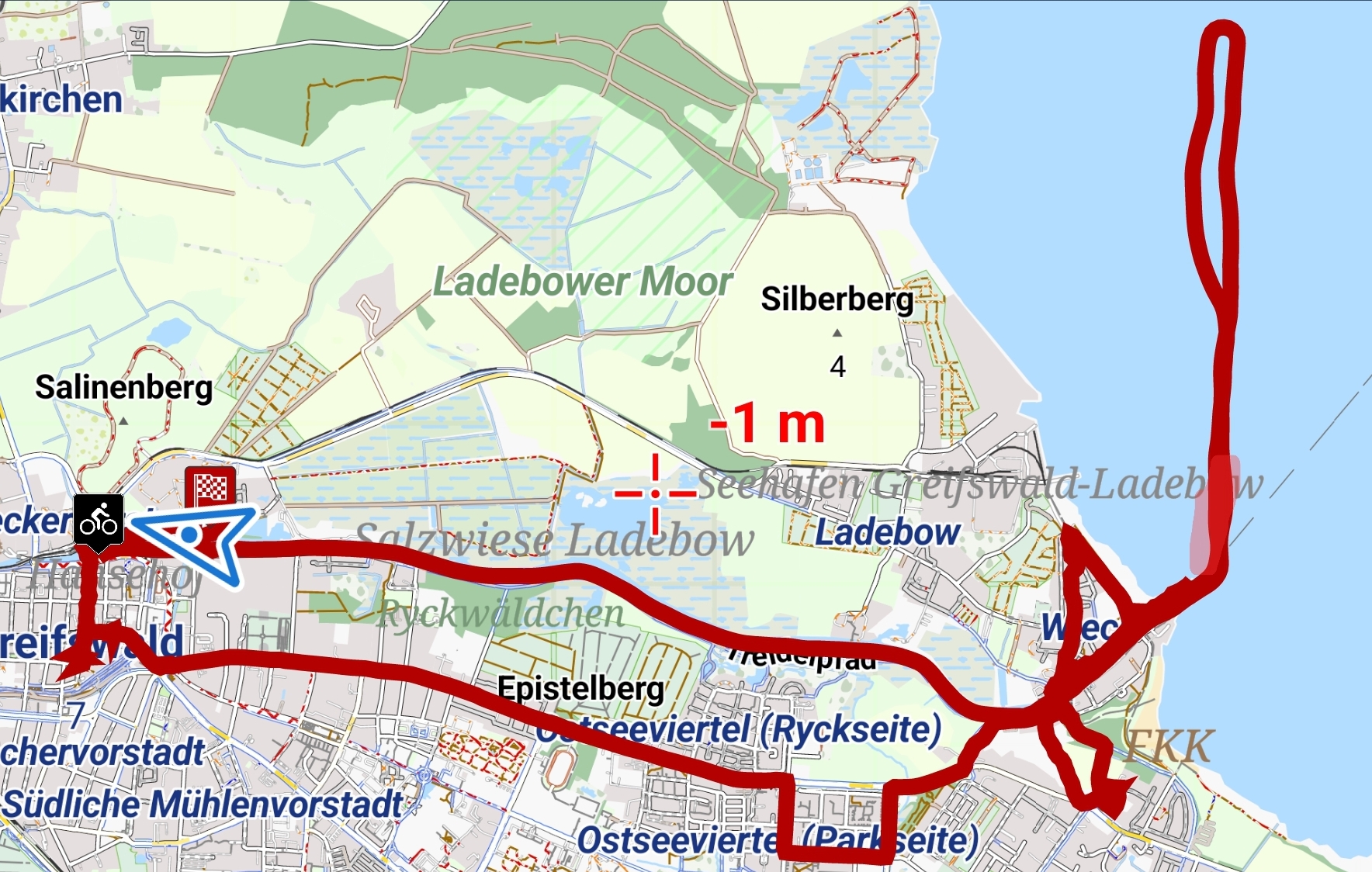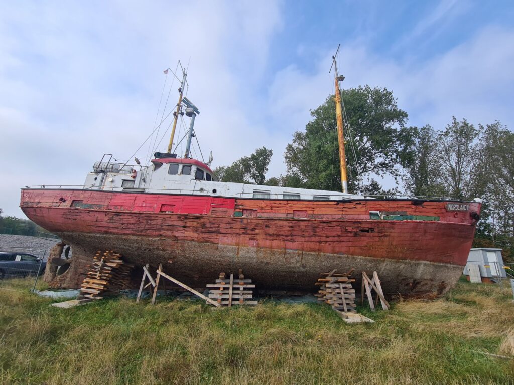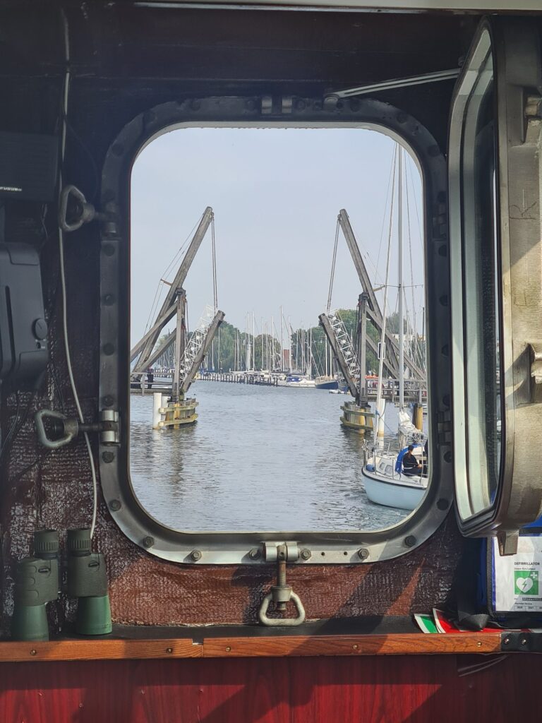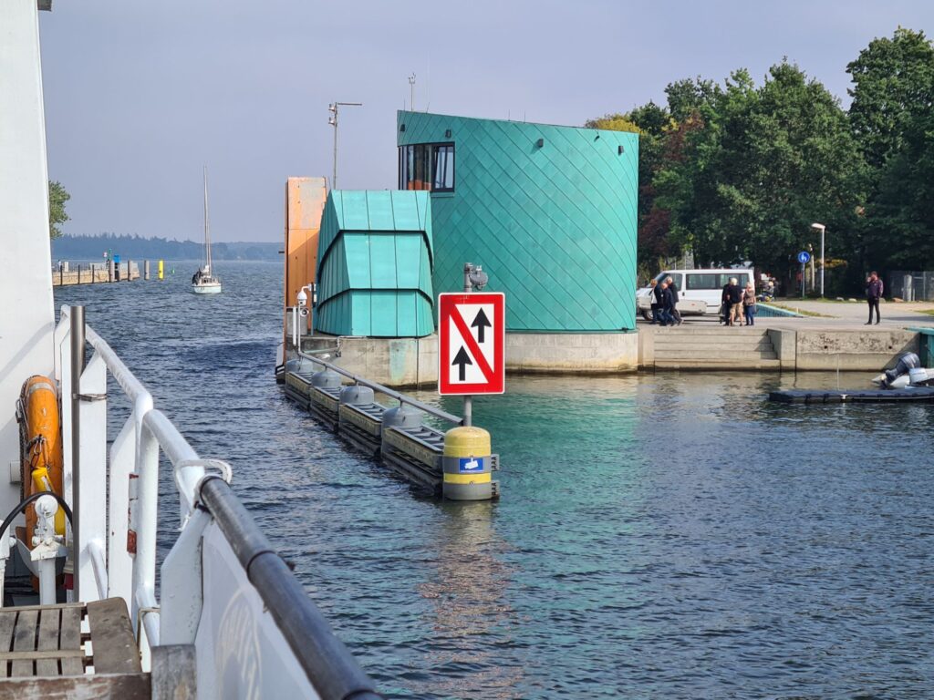 Auch heute war die Vorhersage wieder falsch, genau wie gestern fast den ganzen Tag bewölkt statt sonnig. Alle warmen Anziehsachen mitgenommen, weil wir Boot fahren wollen auf dem Greifswalder Bodden – da isses windig!
