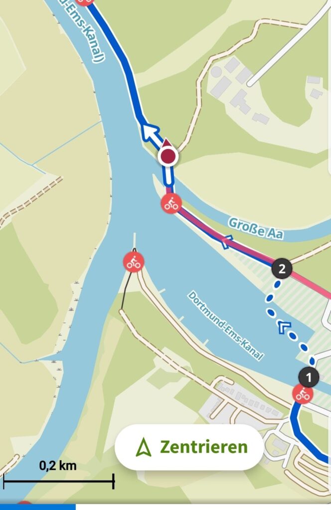 Die Tour führt heute wechselnd an der Ems und dem Dortmund-Ems-Kanal entlang, allerdings auch oft komplett ohne Wasser-Sicht.