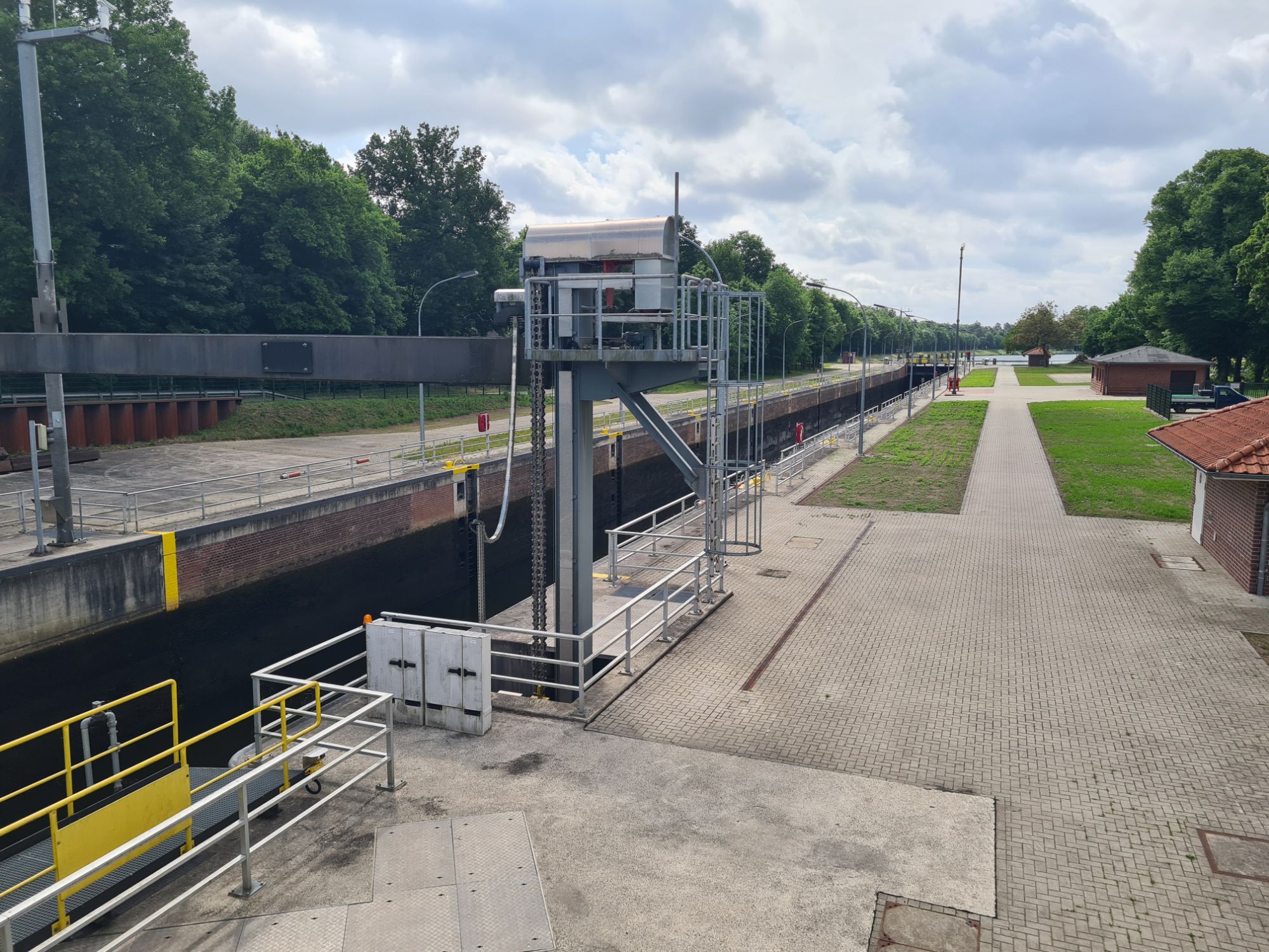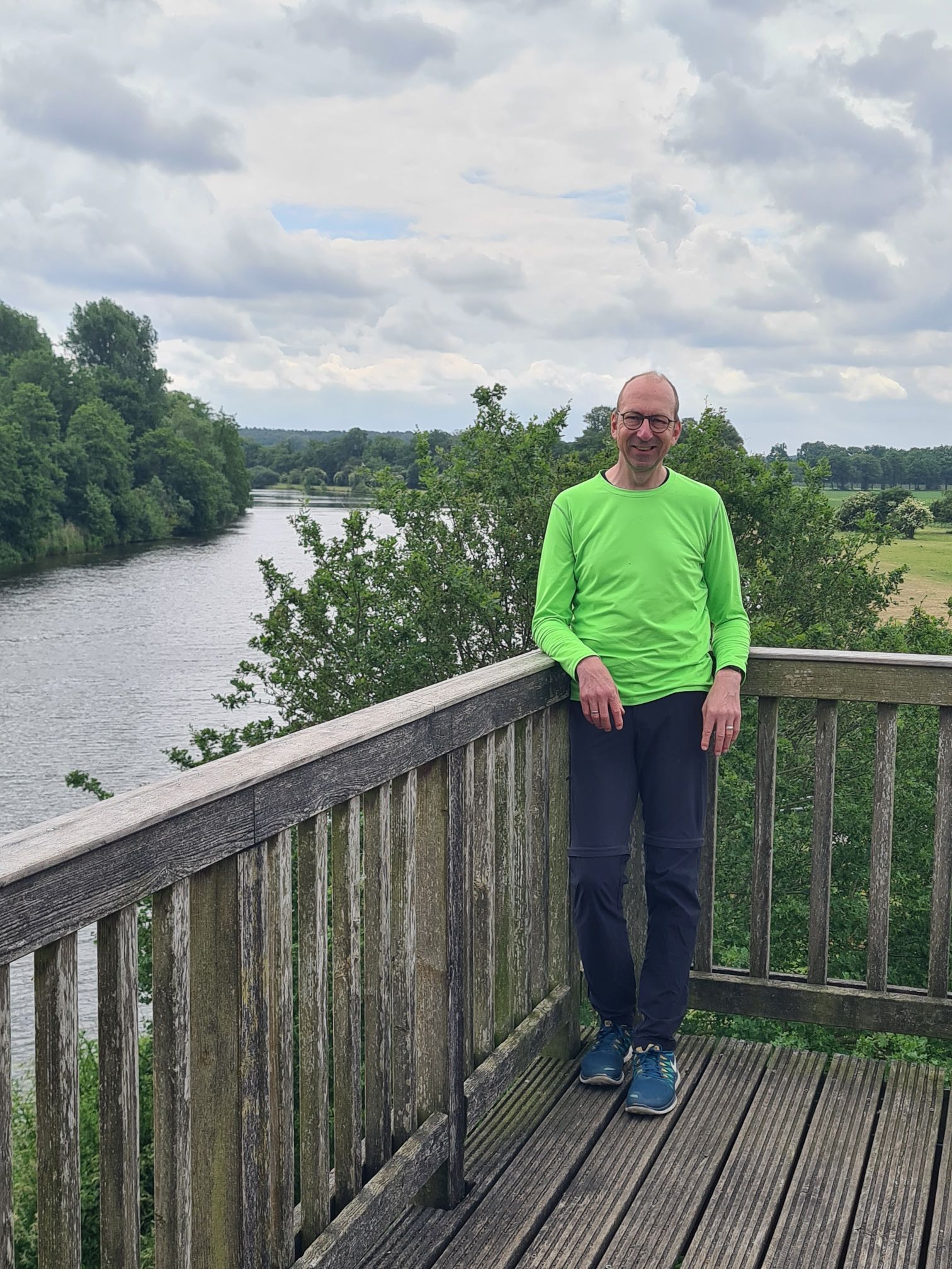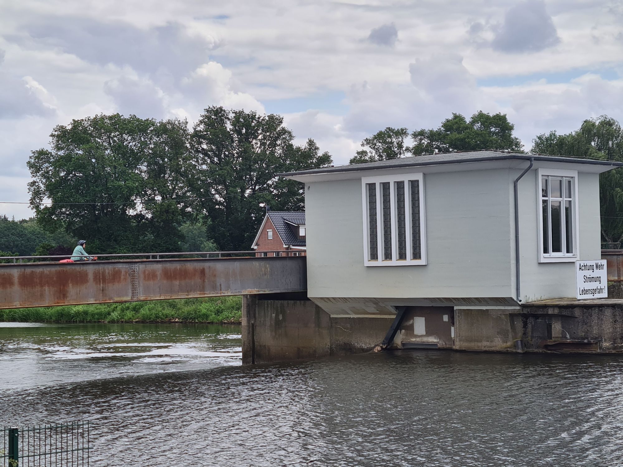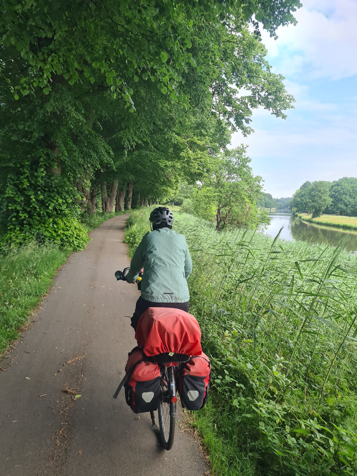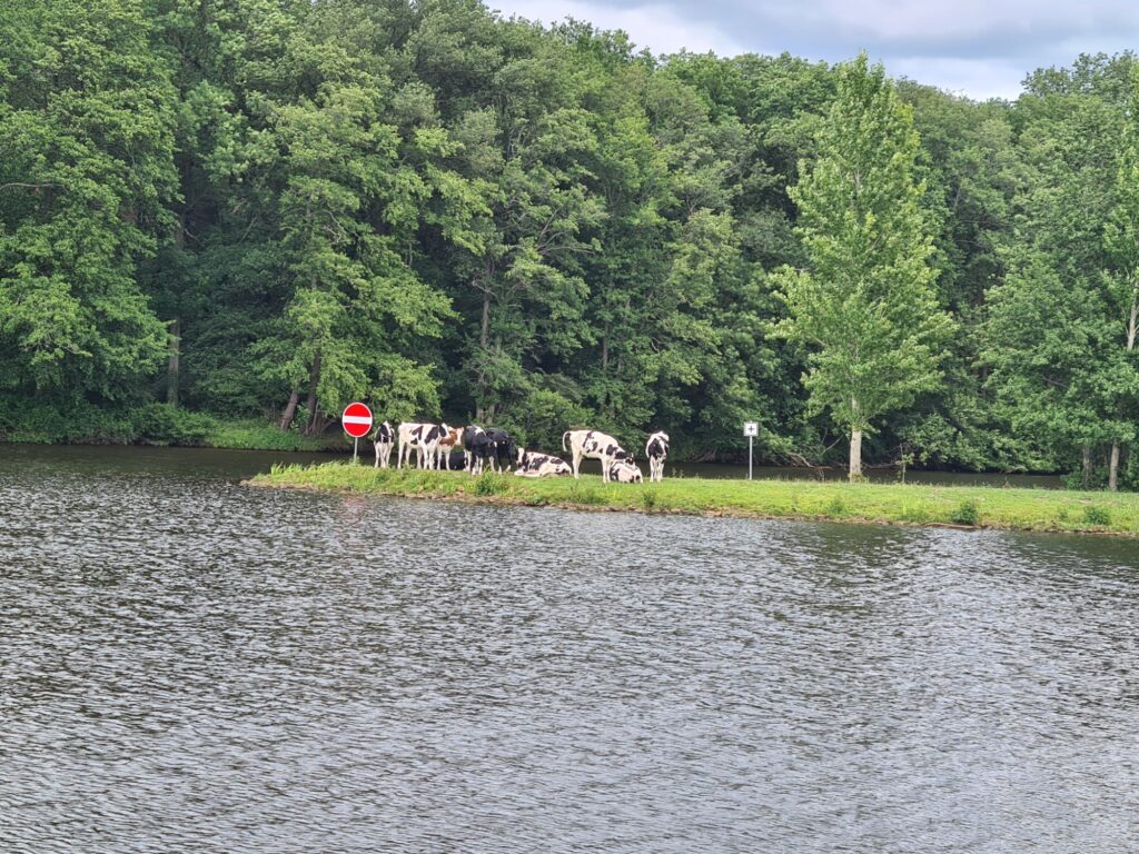 Los durch ein nettes WäldchenRechts die Ems, links der Dortmund-Ems-Kanal Ems, alte Ems und Kanal und wir mittendrinEiner der vielen Ems-AltarmeEms und Kanal, immer Mal weiter vereinigtAm KanalNina überm WehrKühe warten auf die Kuhfähre an der Spitze zwischen Ems und AltarmSchleuse Hüntel – wir haben heute mehrere passiert Yachthafen Emspark – sehr hübsch Was Photoshop alles kann, gleiches Bild ohne das Team.Die Ems bei Steinbild (das ist ein Ort!)Da kommen wir her – da geht’s hinAbzweig des Küstenkanals nach Oldenburg Angekommen!