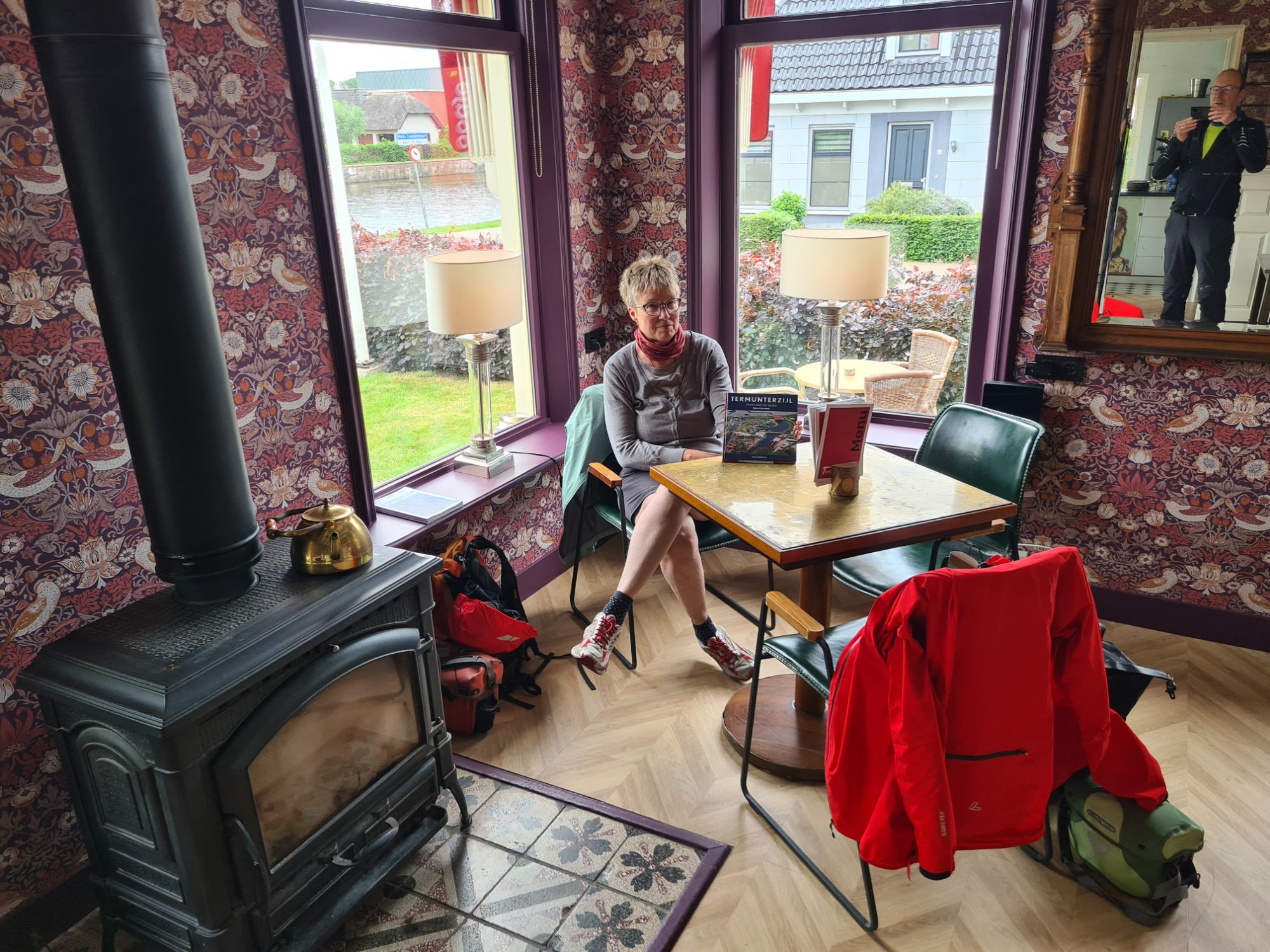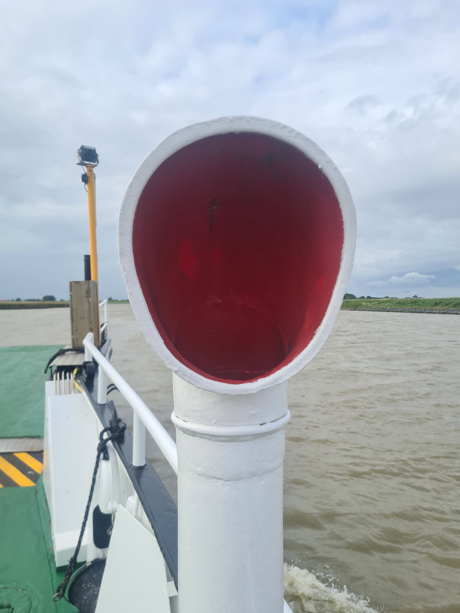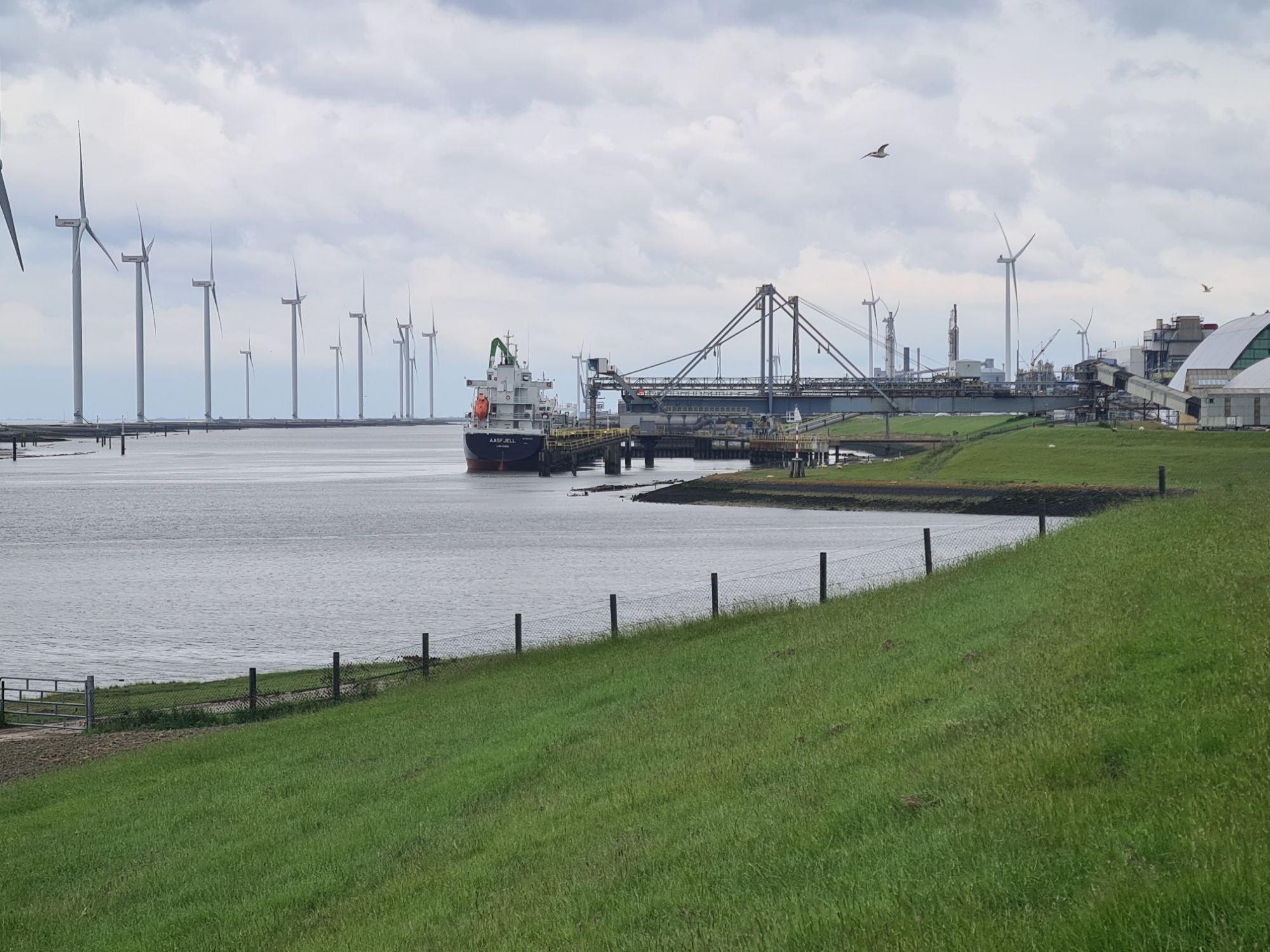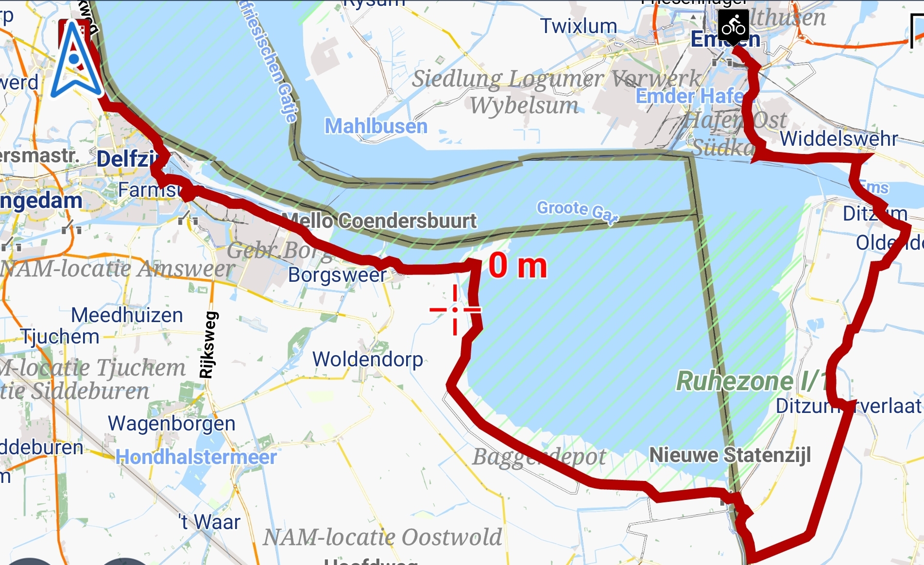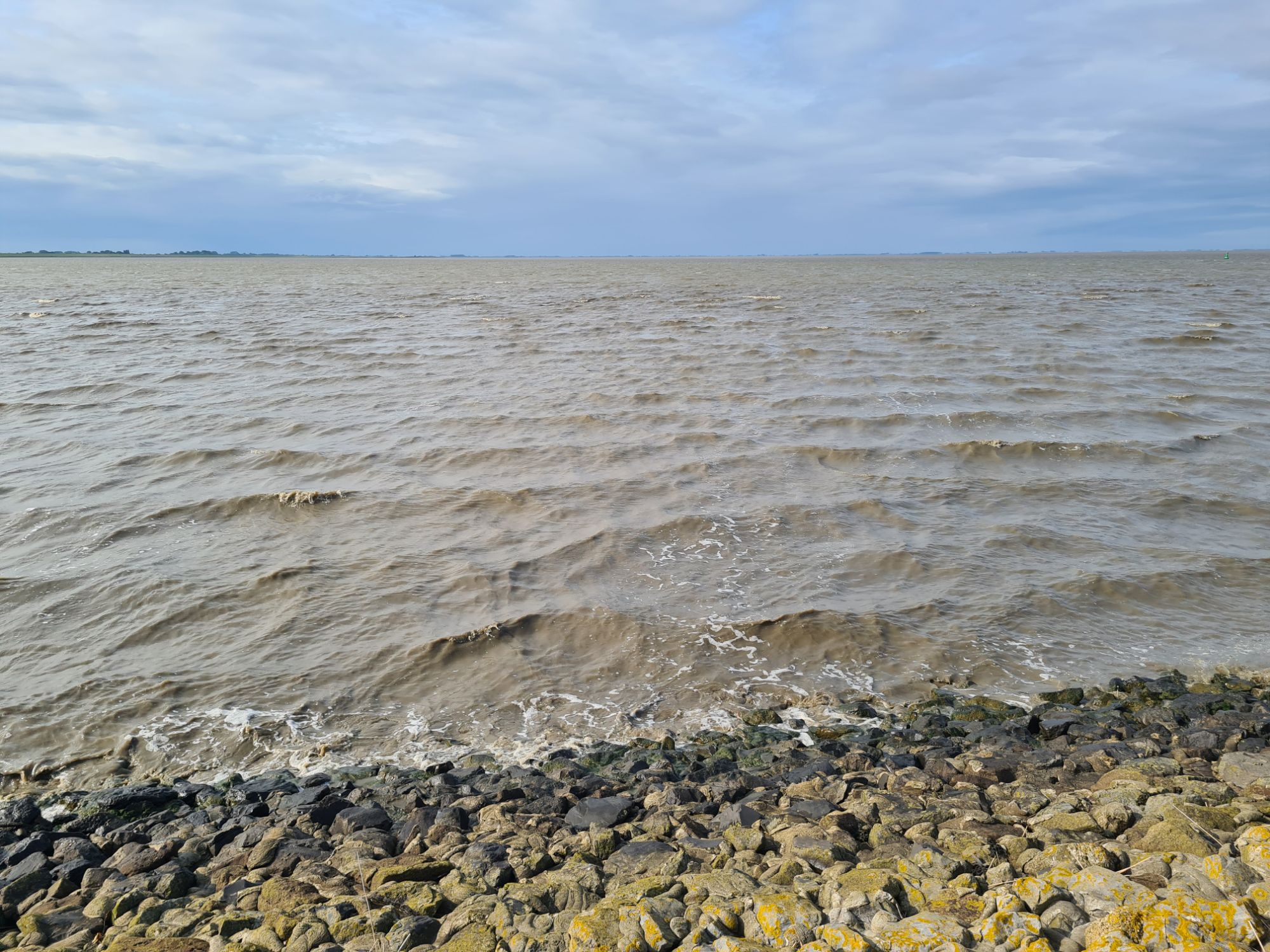 Zuerst geht es zurück zur Fähre, die uns wieder ans andere Emsufer bringtEtwas leerer als gestern…Hier sind wir an der deutsch-niederländischen Grenze….…. ein Bein in D, das andere in NL. Axs Rad steht in D, Nis in NLTypisch für die Nordseeküste: Meer, Deich, Weg, GewässerUnd Schafe, glotzendBlick zurück über den Dollard nach Emdensuperschönes kleines Café „Teetied“ in Termunterzijl – der Kuchen war echt köstlich!!Wir wandeln den Track ein wenig ab, da wir gerne dicht am Wasser und weit weg von Straßen fahren wollen. Hat auch 10km gespart… Hier sind wir in einem Industriegebiet, wo es an vielen Stellen dampft und komisch riecht – etwas gruselig!Solche Monstren stehen da…Sieht etwas gewittrig aus….… ist jedenfalls ziemlich naß! Die Mischung aus Wind, Regen und Kälte ist definitiv unattraktiv! Zum Glück regnet es erst auf den letzten Kilometern…TrocknungUnser Zimmer von außen, 2 Dachfenster und zwei Fenster mit Schlagläden