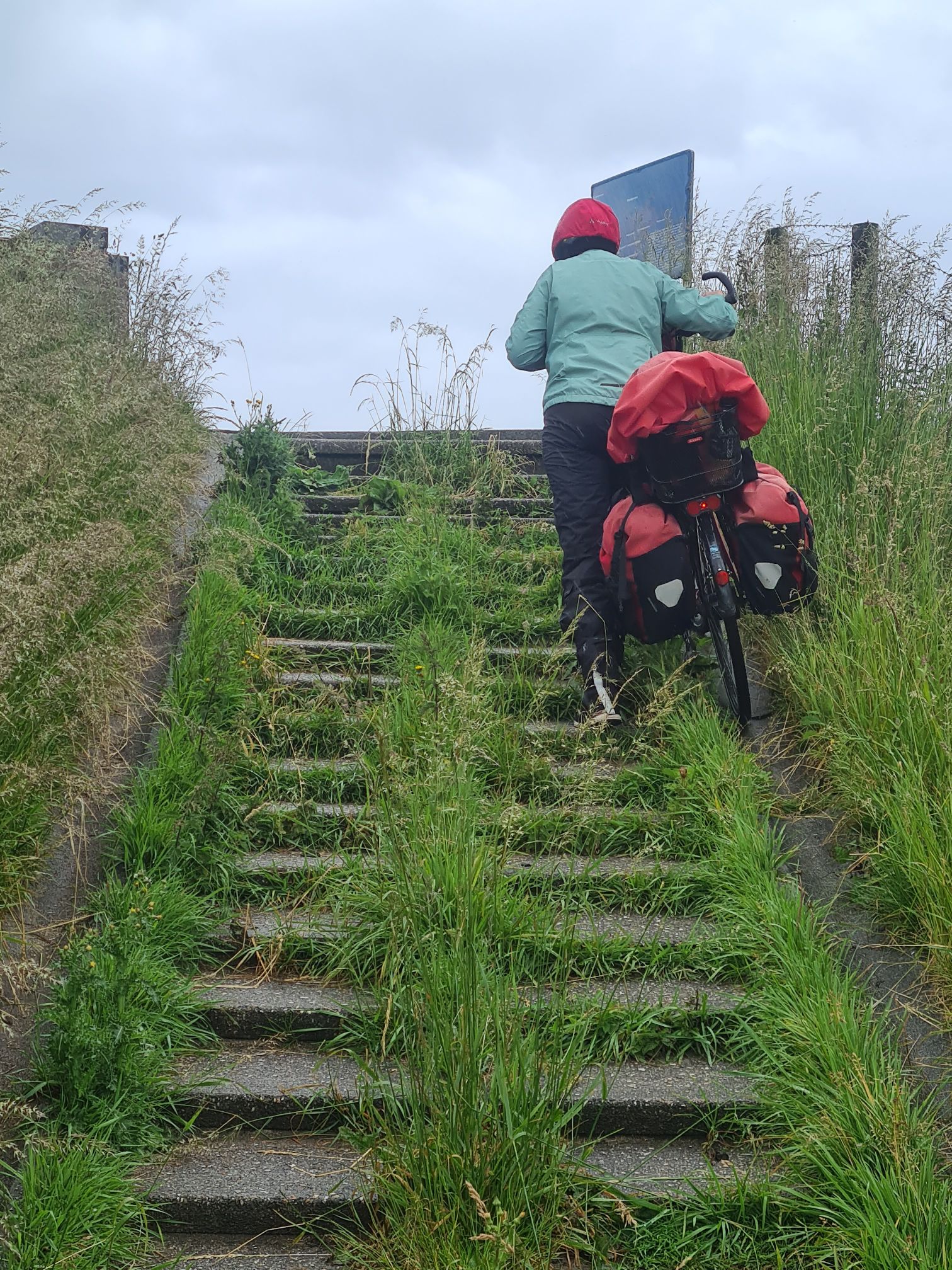 Viel besser als erwartet trotz immer wieder Regen, zum Glück etwa 20km/h weniger Windgeschwindigkeit als gestern