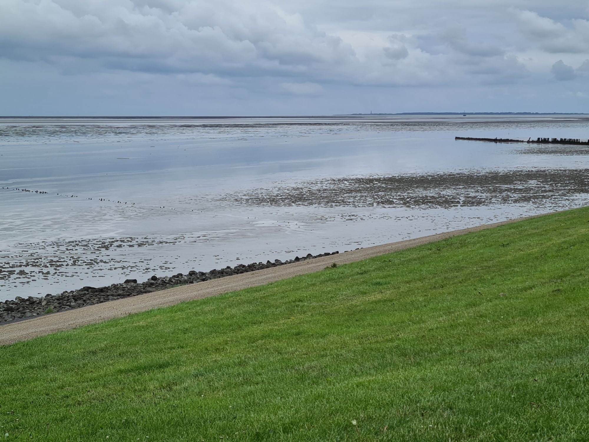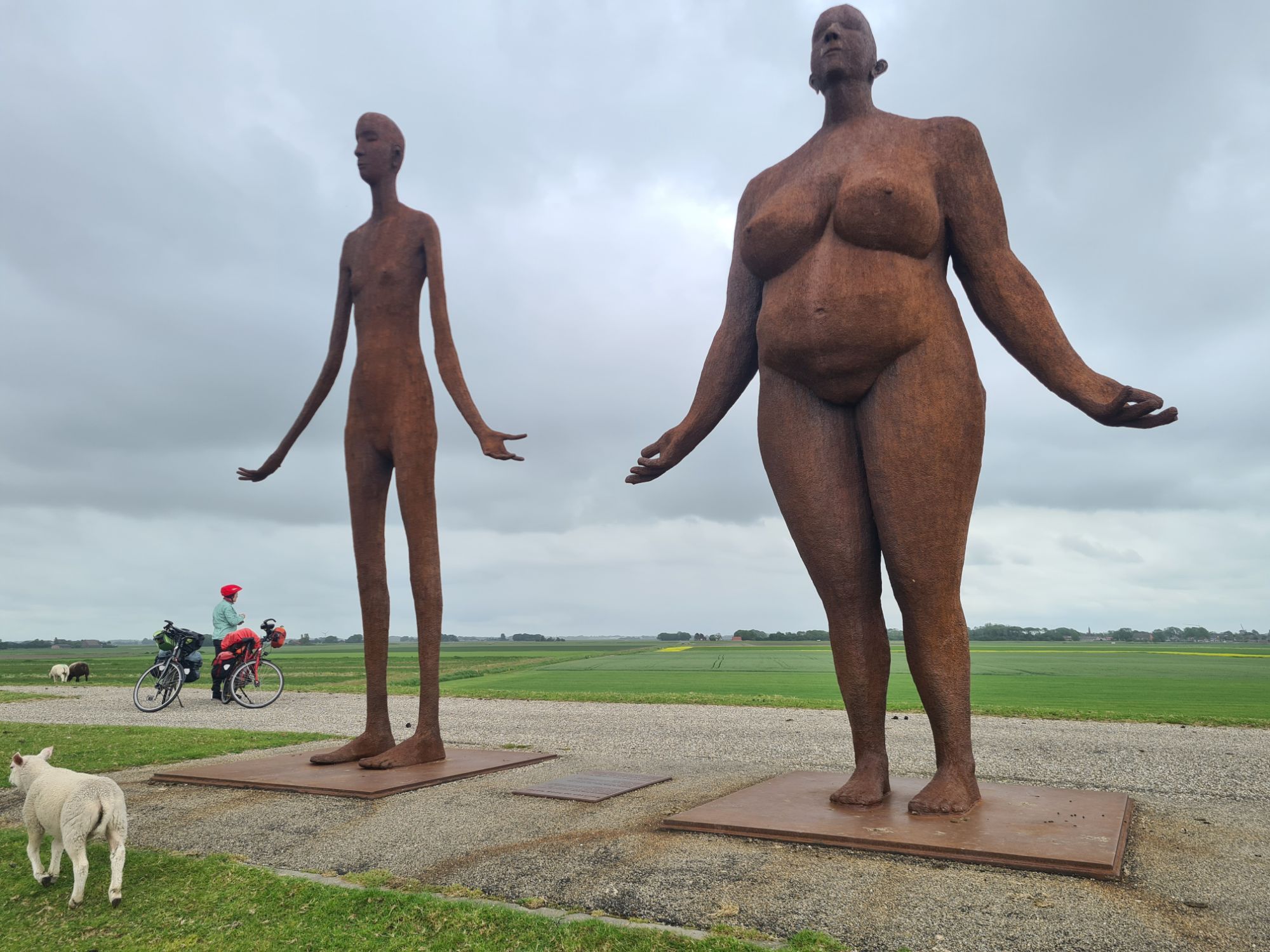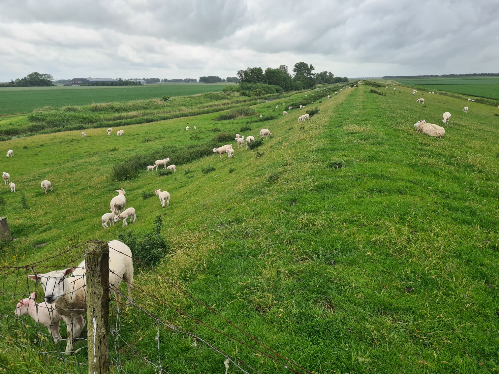 Treppe hoch……oben dann schöne Aussicht auf Deich und Schafe Die Bäume hier haben AugenHier sind wir in einer Kombi aus Militär- und Naturschutzgebiet. Man darf rein, wenn das Militär grad nicht anwesend ist – Pfingstsamstag isses nicht da