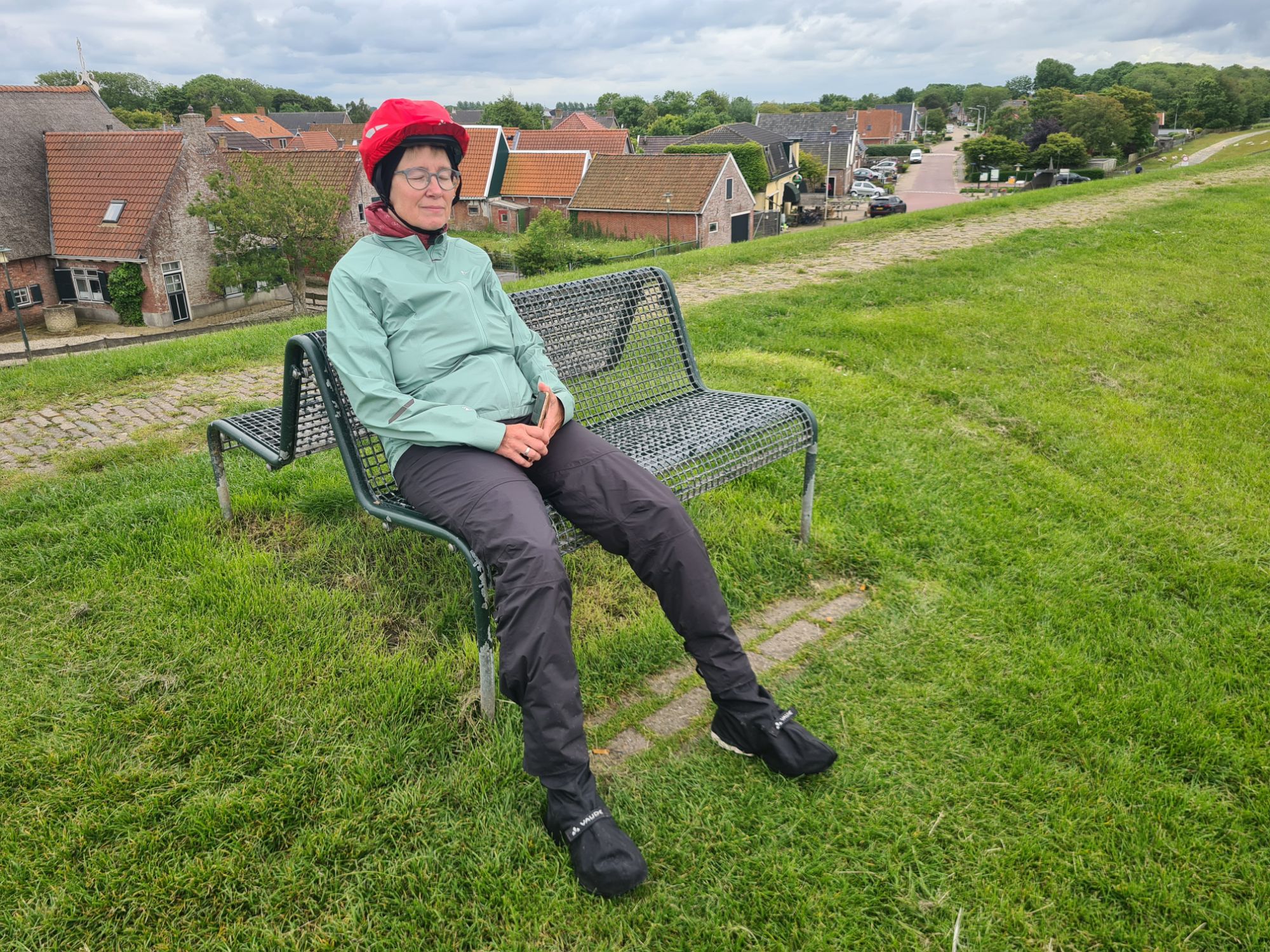 Endlich ein Café, wir sind dankbar für Wärme und Trockenheit!!! (In Lauwersoog)Kleiner Hafen, auch in LauwersoogHier geht’s jetzt langViel LandschaftKirche und Friedhof in WierumAm Nationalpark LauwersmeerHier wurde der lösliche Kaffee erfunden Die Damen passen auf, nicht auf das Schaf, sondern auf HochwasserFähre zwischen Holwerd und der Insel Ameland Unsere Unterkunft für diese Nacht – ein LuxuszeltSehr hübsch, leider ohne Heizung – 11 Grad werden in der Nacht… also alle Klamotten anlassen und sich fest aneinanderkuscheln!Vollwertiges Abendessen! Im Ort gibt es kein Restaurant, drum waren wir noch fix beim SPAR. Wo wir morgen was zum Frühstück herbekommen wissen wir noch nicht….
