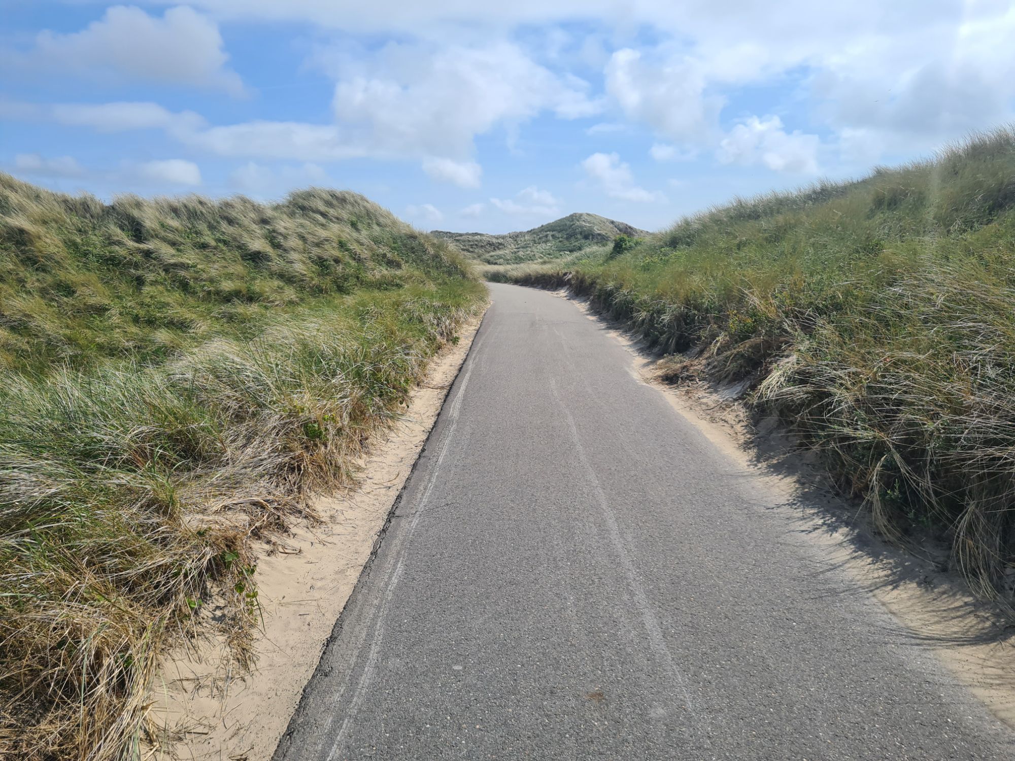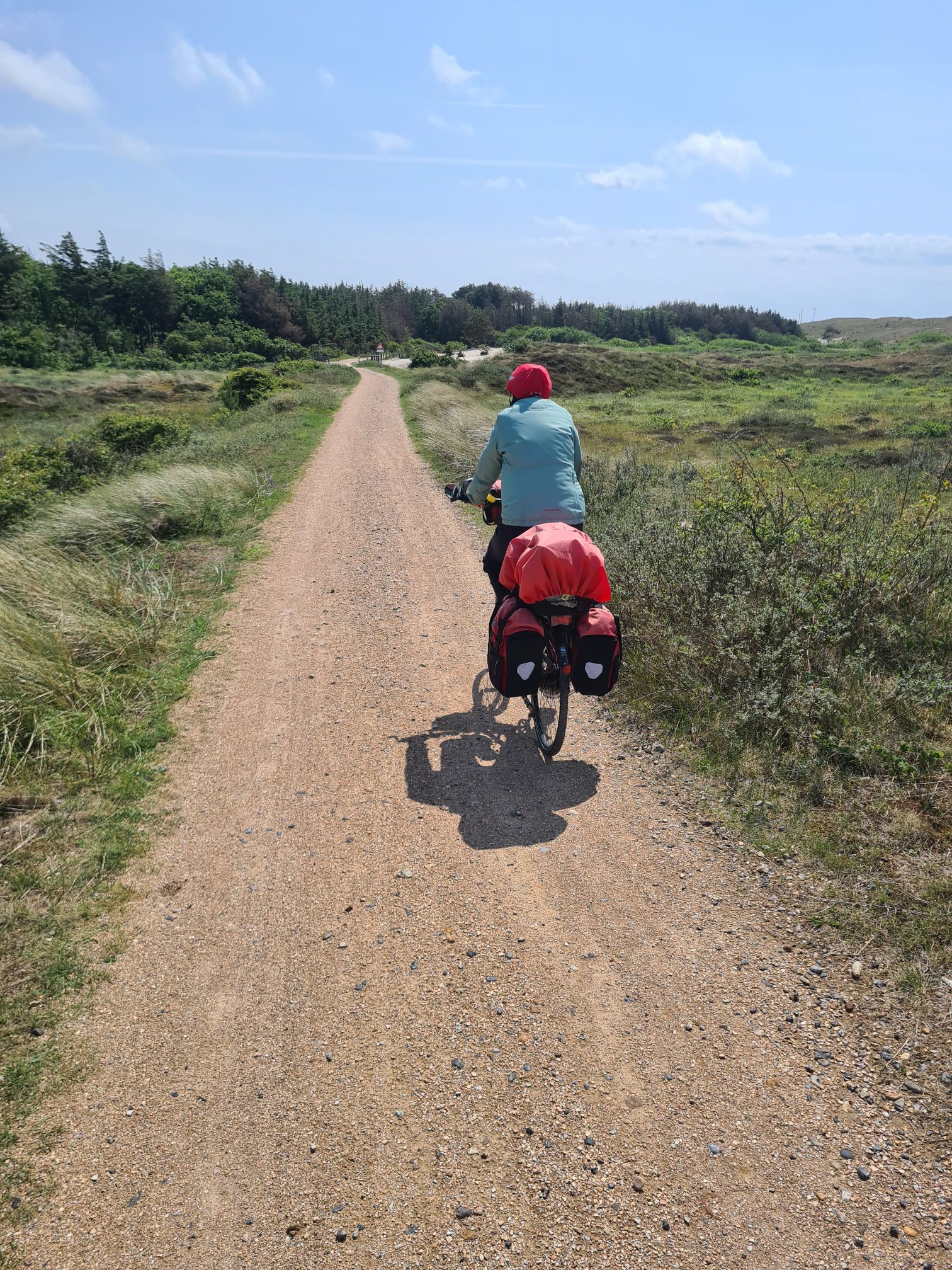 Wir biegen in einer phantastische Dünenlandschaft ein, Sand, Heide, Wälder, Gewässer, ganz viel Abwechslung und tolle weitgehend asphaltierte Wege. Gut, dass die Züge nicht fahren, sonst hätten wir das verpasst!!