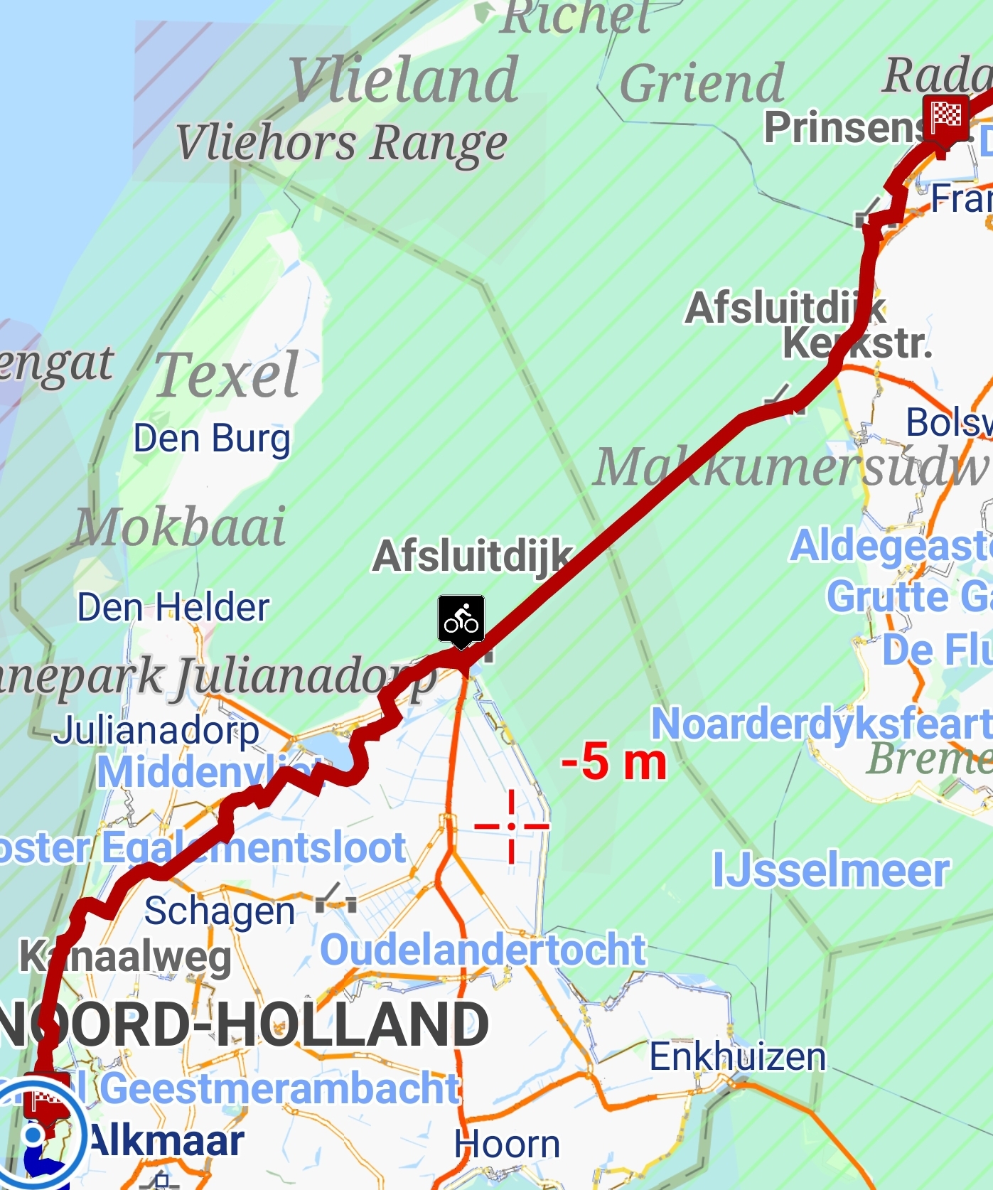 Die Aussichten für heute: bis mittags Regen, Wind aus NW/W bis 61km/h. Wir wollen nach SW. Motivation: 0. Wir suchen Bahnverbindungen. Hurra, die holländische Bahn streikt heute. Es finden sich aber einzelne Verbindungen, die wir ab Anna Paulowna nutzen können, also erstes Zwischenziel nach 22km.