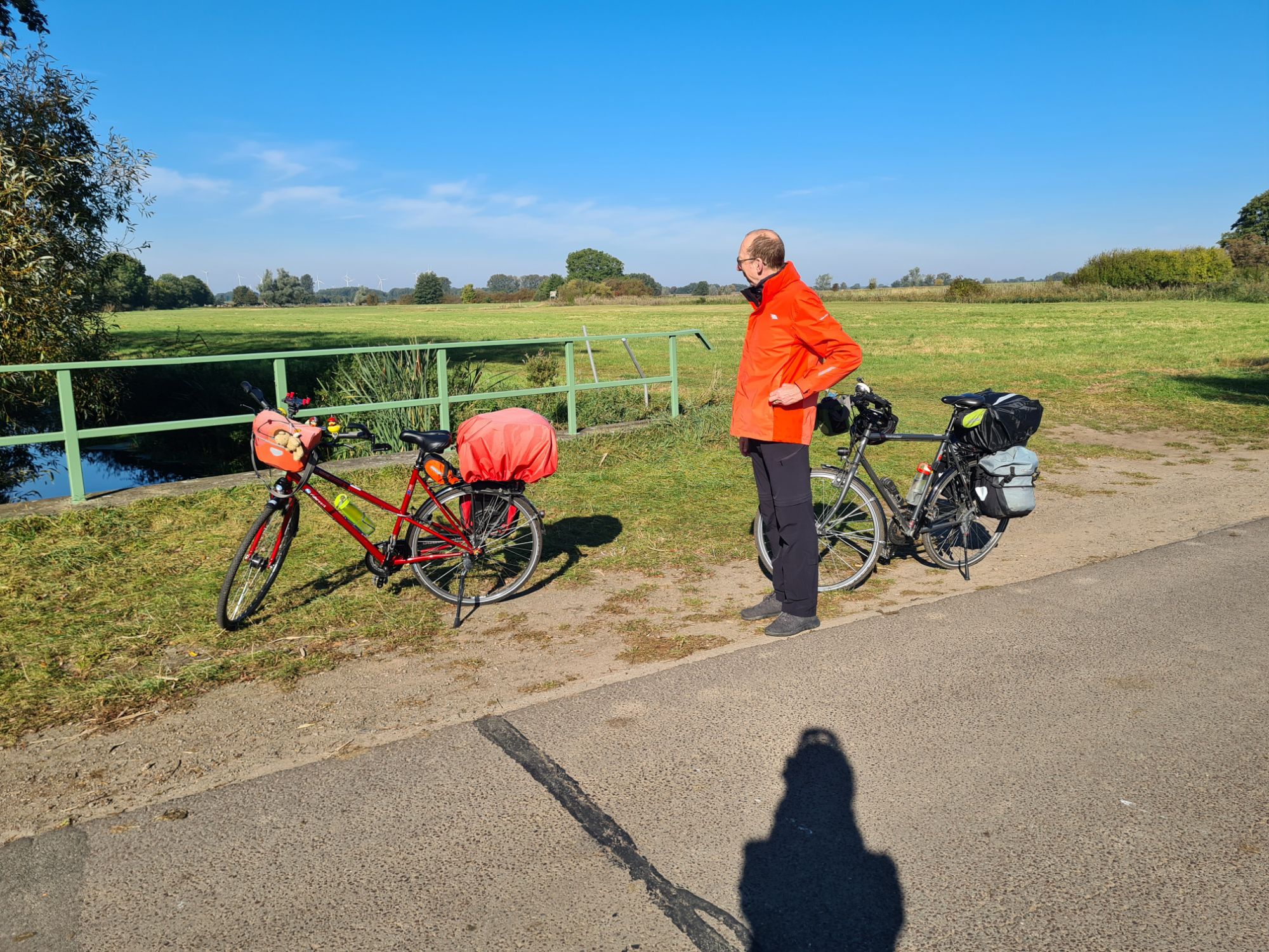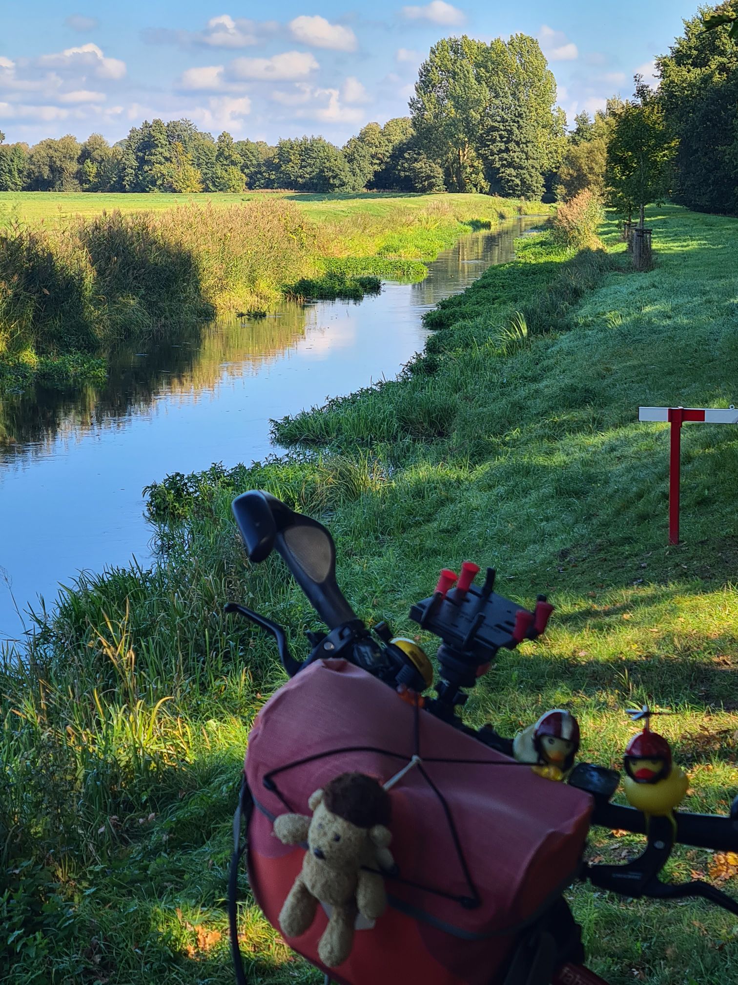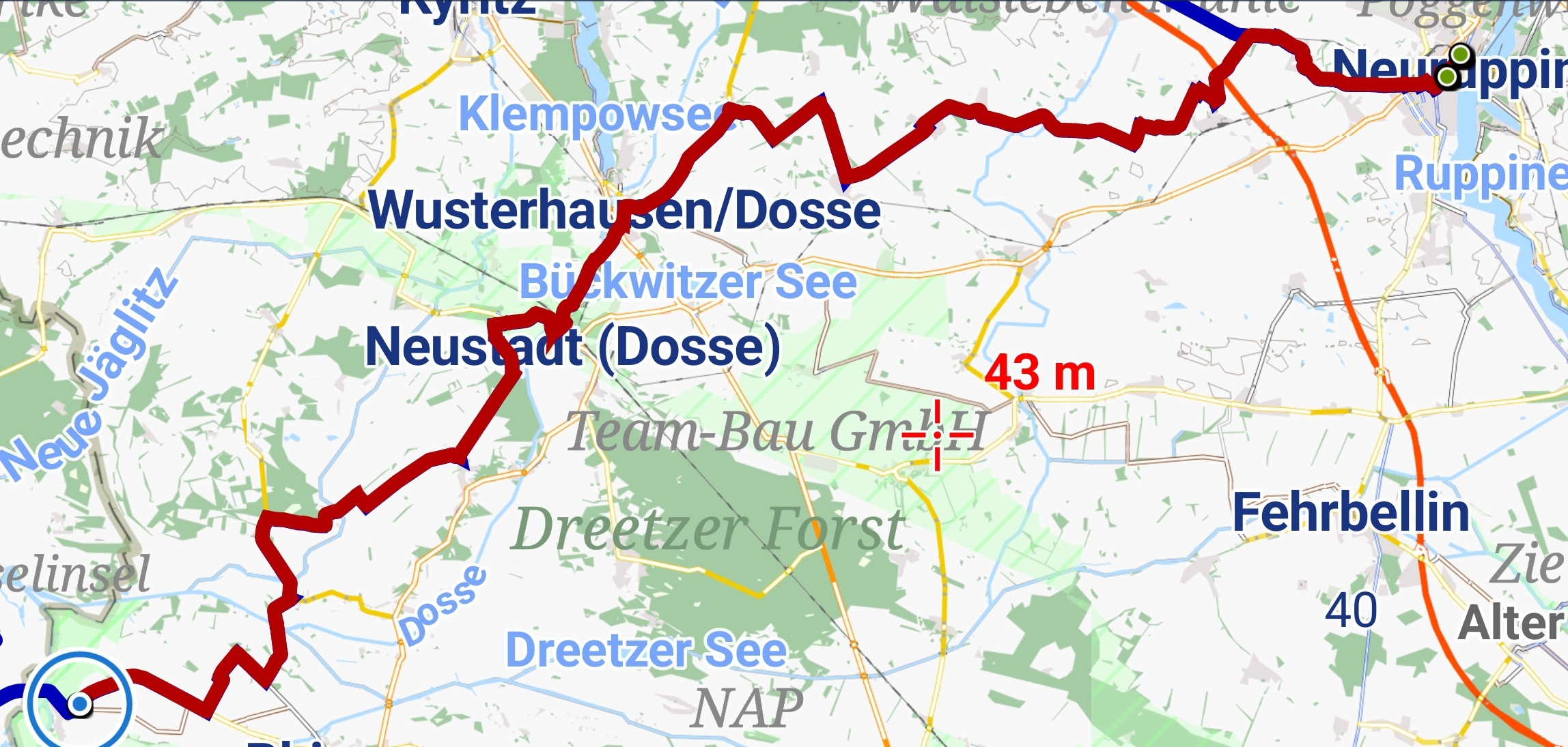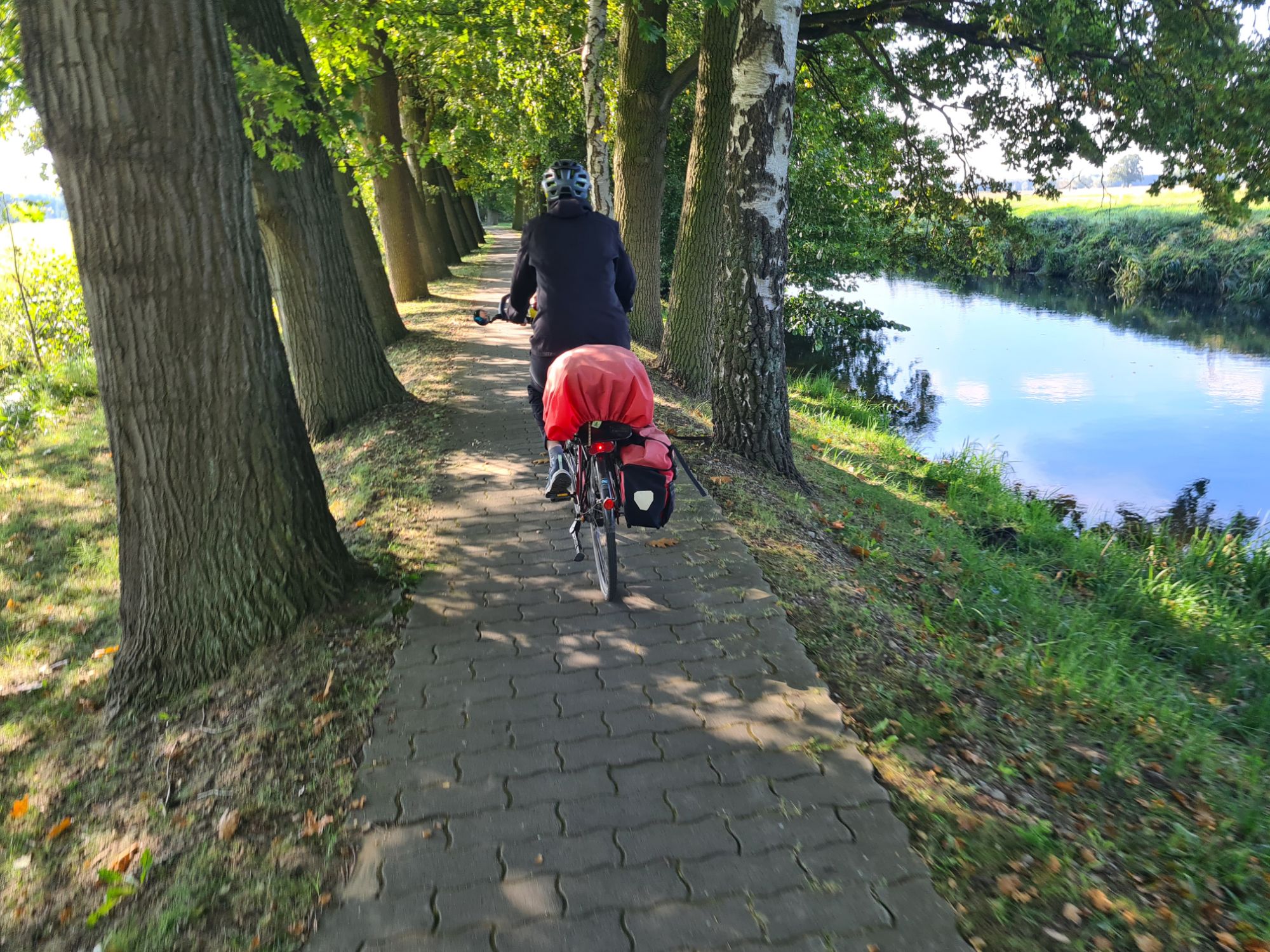 Insgesamt heute meist radeln auf der Straße , aber sehr wenig befahren bis auf die letzten 4km, vielleicht wegen des heutigen Feiertags. Der schönste Abschnitt war neben der Dosse, völlig ruhig, keine Menschen….