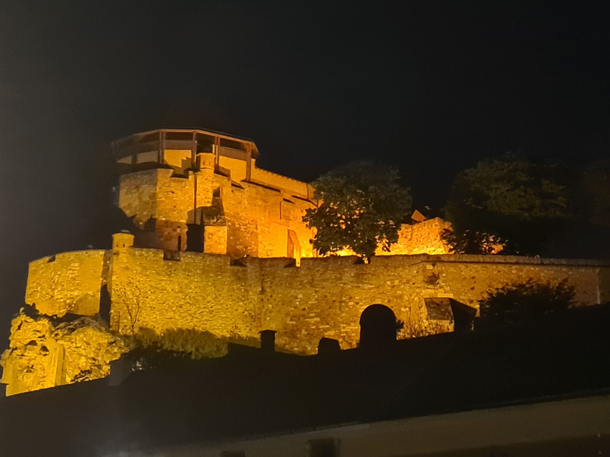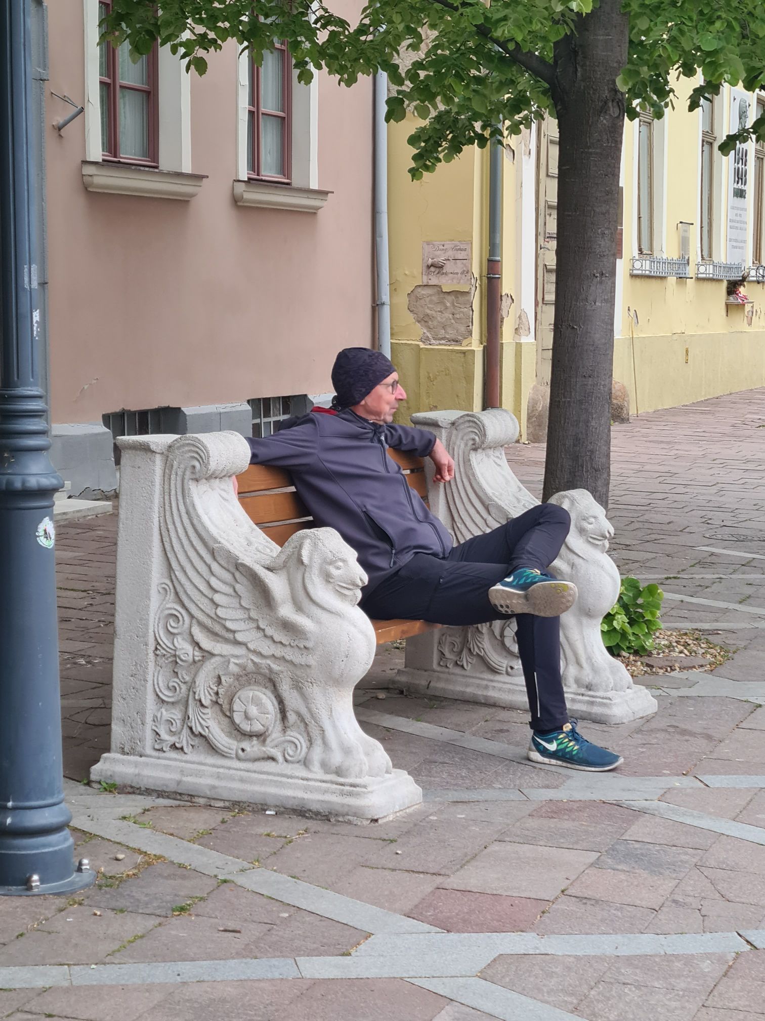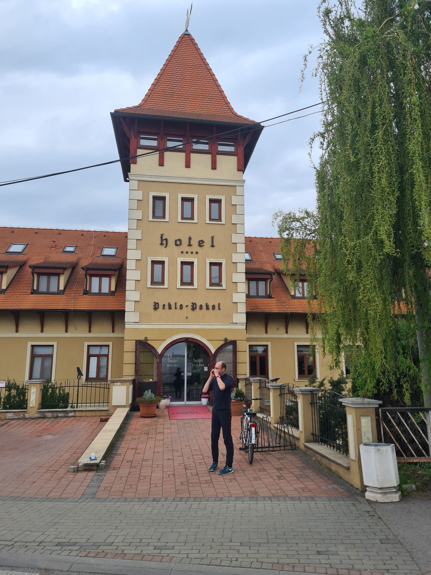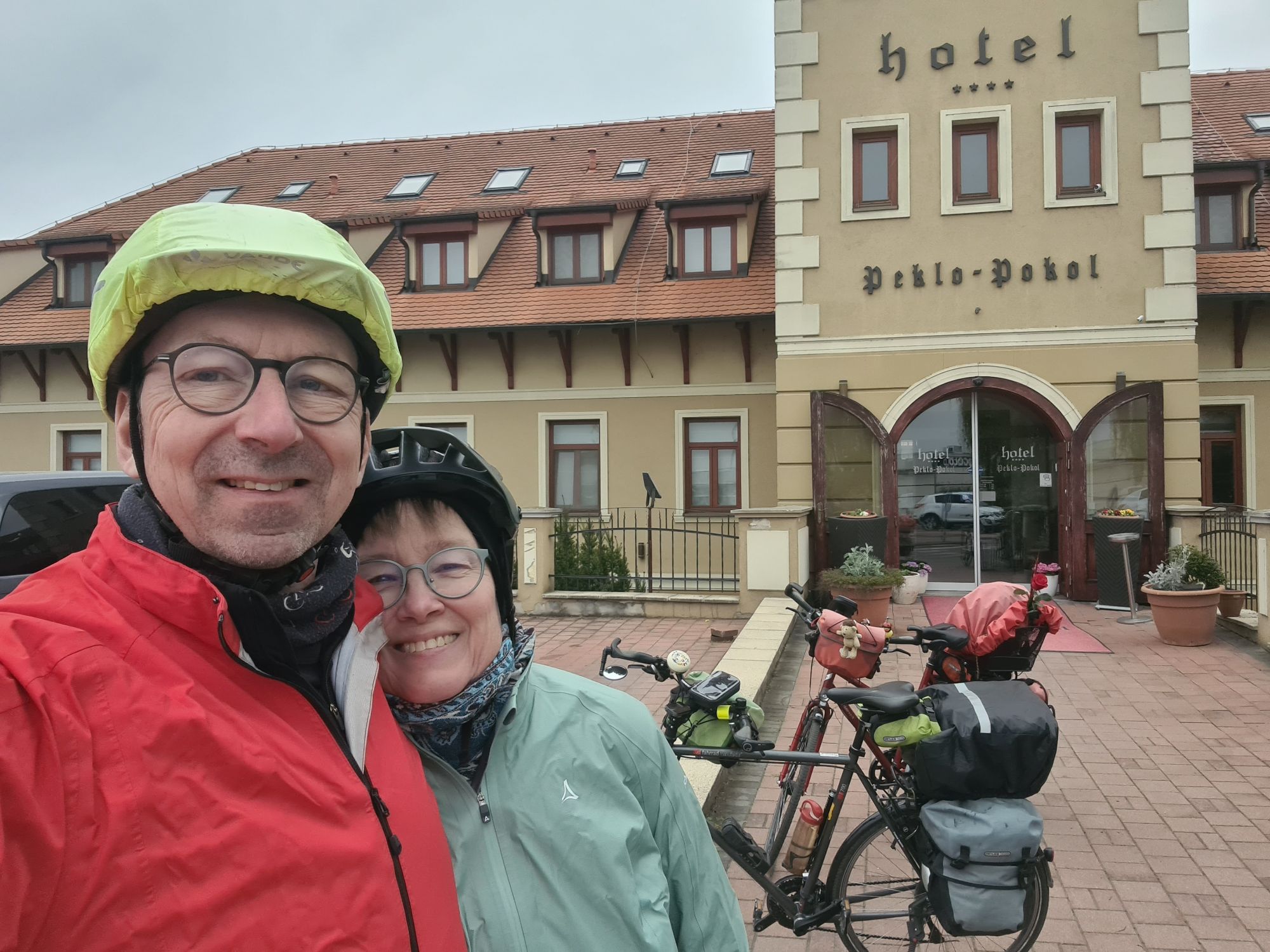Nach etwa 20 km unsere erste richtige Pause mit Trinken, Knoppers und Blick auf ein Glockenspiel. Es hat fast aufgehört zu Regnen, bin gespannt, ob heute die Sonne mal rauskommt. Die Wetterapp ist sich unsicher…